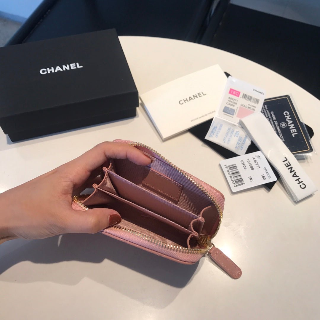 Chanel Zipped Wallet 14Cm Light Pink Caviar Gold Hardware