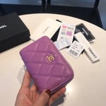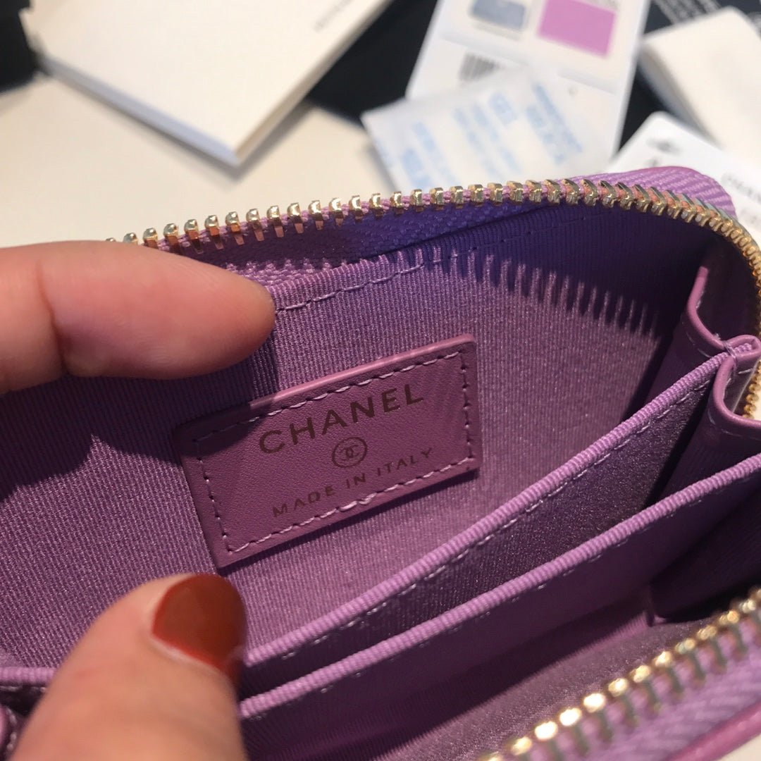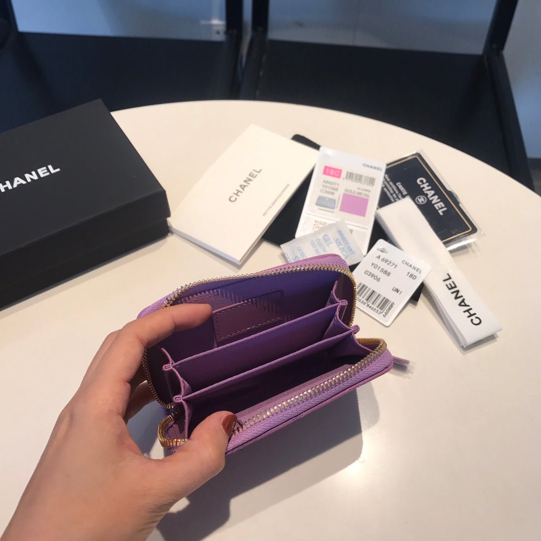 Chanel Zipped Coin Basic Purse 11 Purple Calfskin Gold Icon