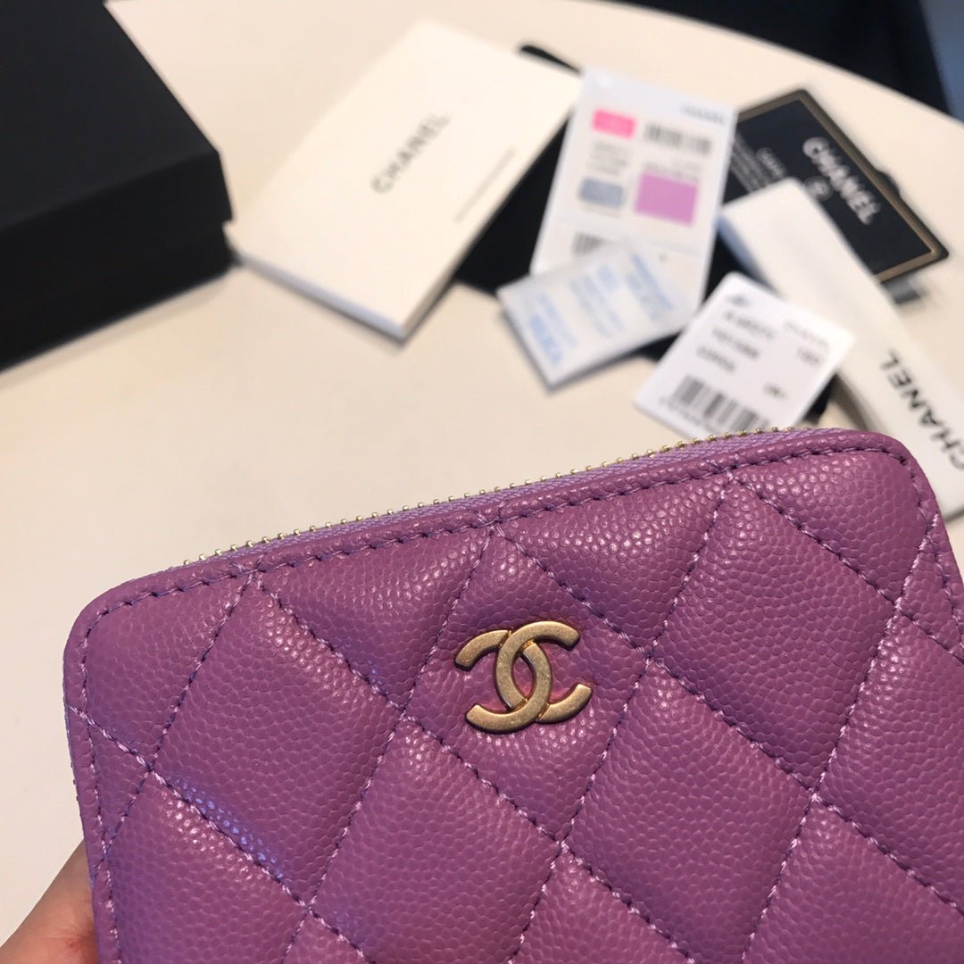 Chanel Zipped Wallet 14Cm Purple Caviar Gold Hardware