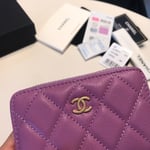 Home Shop Wallets Chanel Wallets Chanel Zipped Coin Basic Purse 11 Purple Calfskin Gold Icon