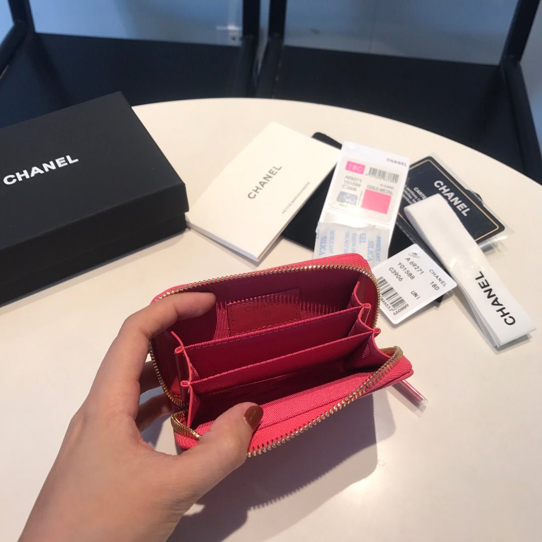 Chanel Zipped Coin Basic Purse 11 Red Pink Calfskin Gold Icon