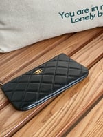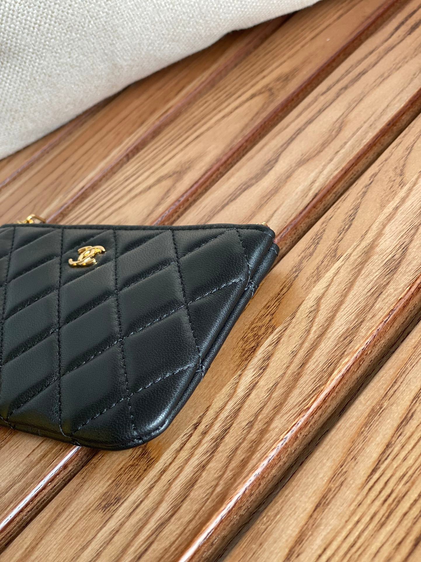 Home Shop Wallets Chanel Wallets Chanel Zipped Wallet 15 Black Lambskin Gold Hardware
