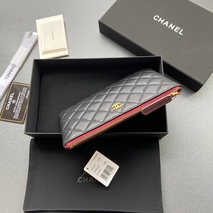 Home Shop Wallets Chanel Wallets Chanel Zipped Wallet 20Cm Black Quilted Calfskin Gold Hardware