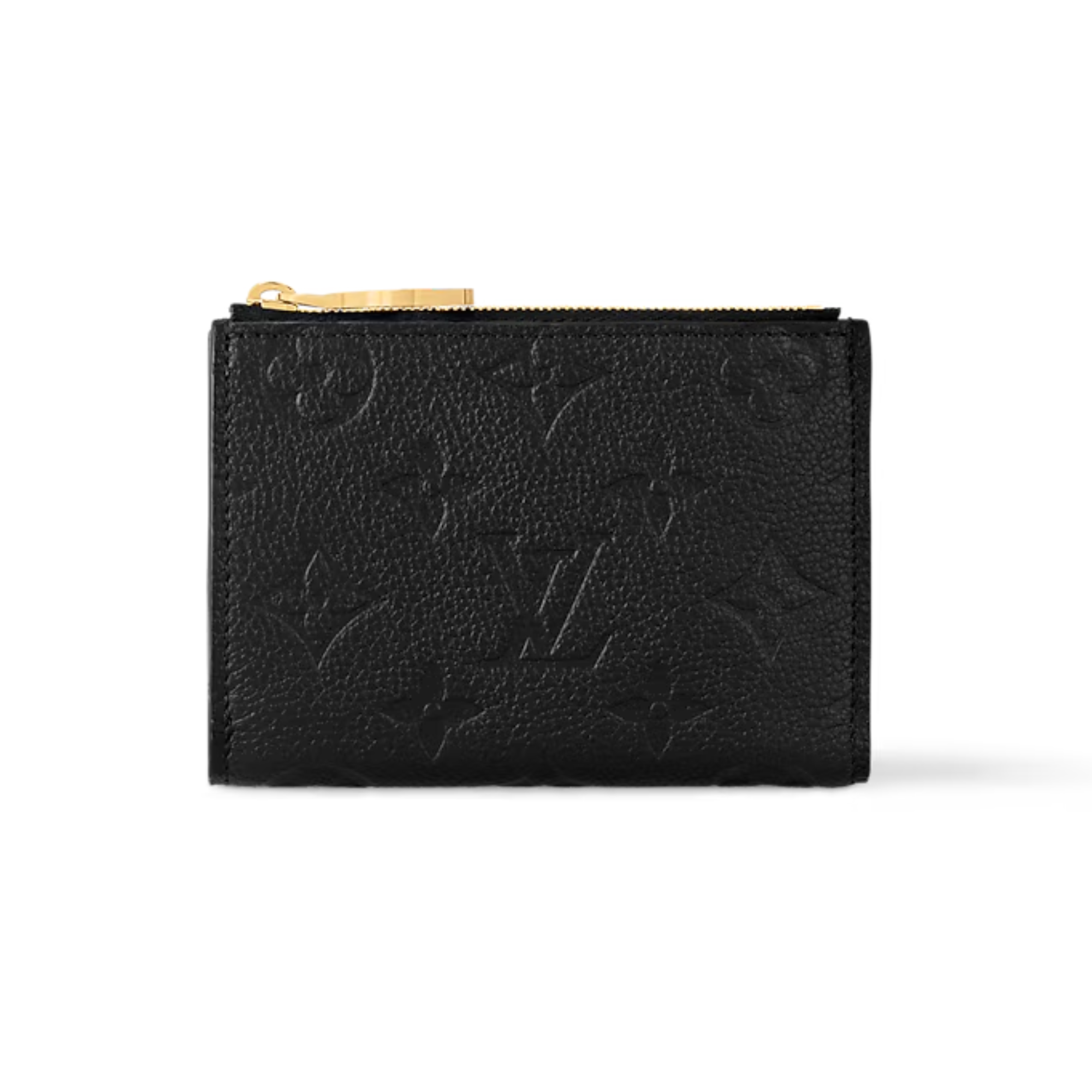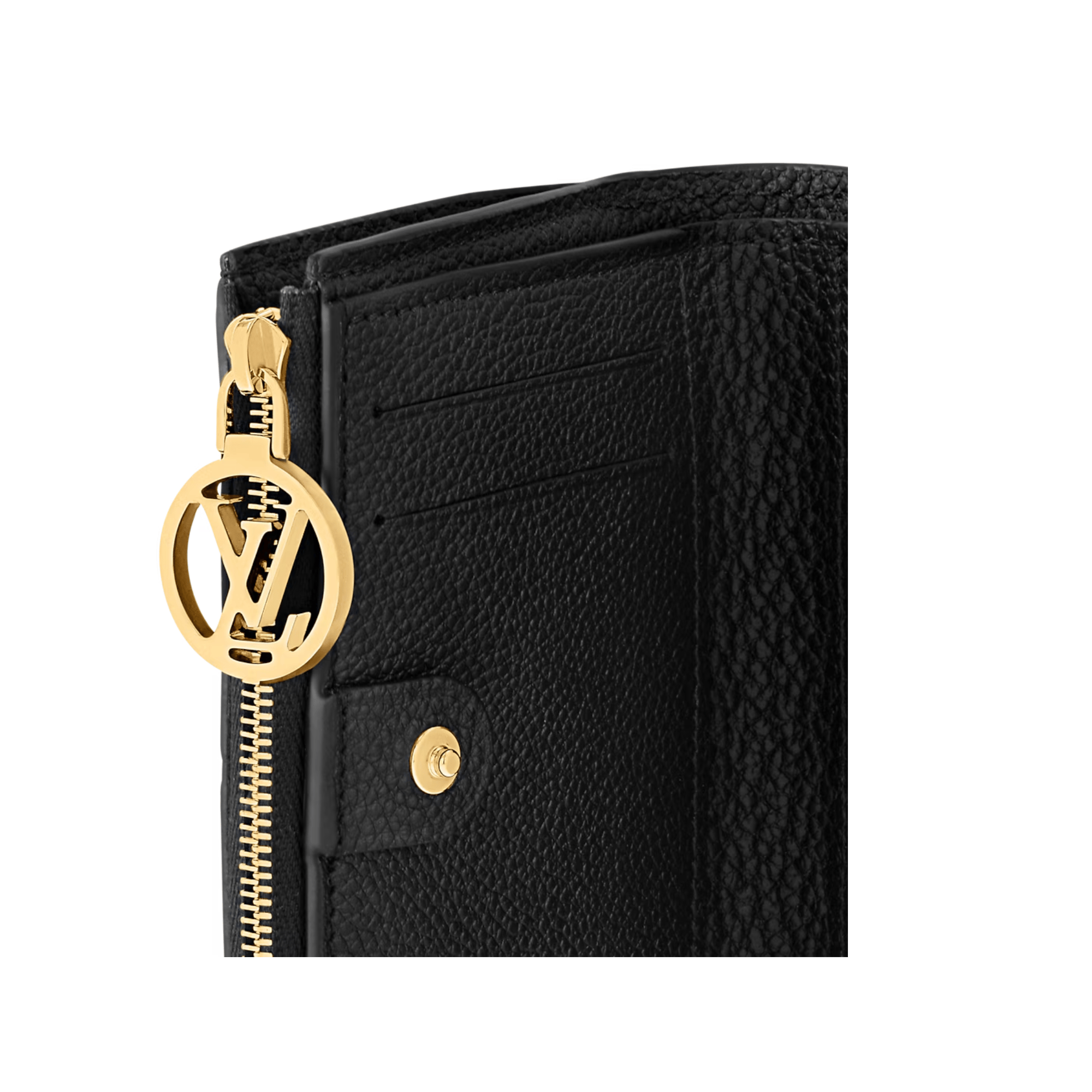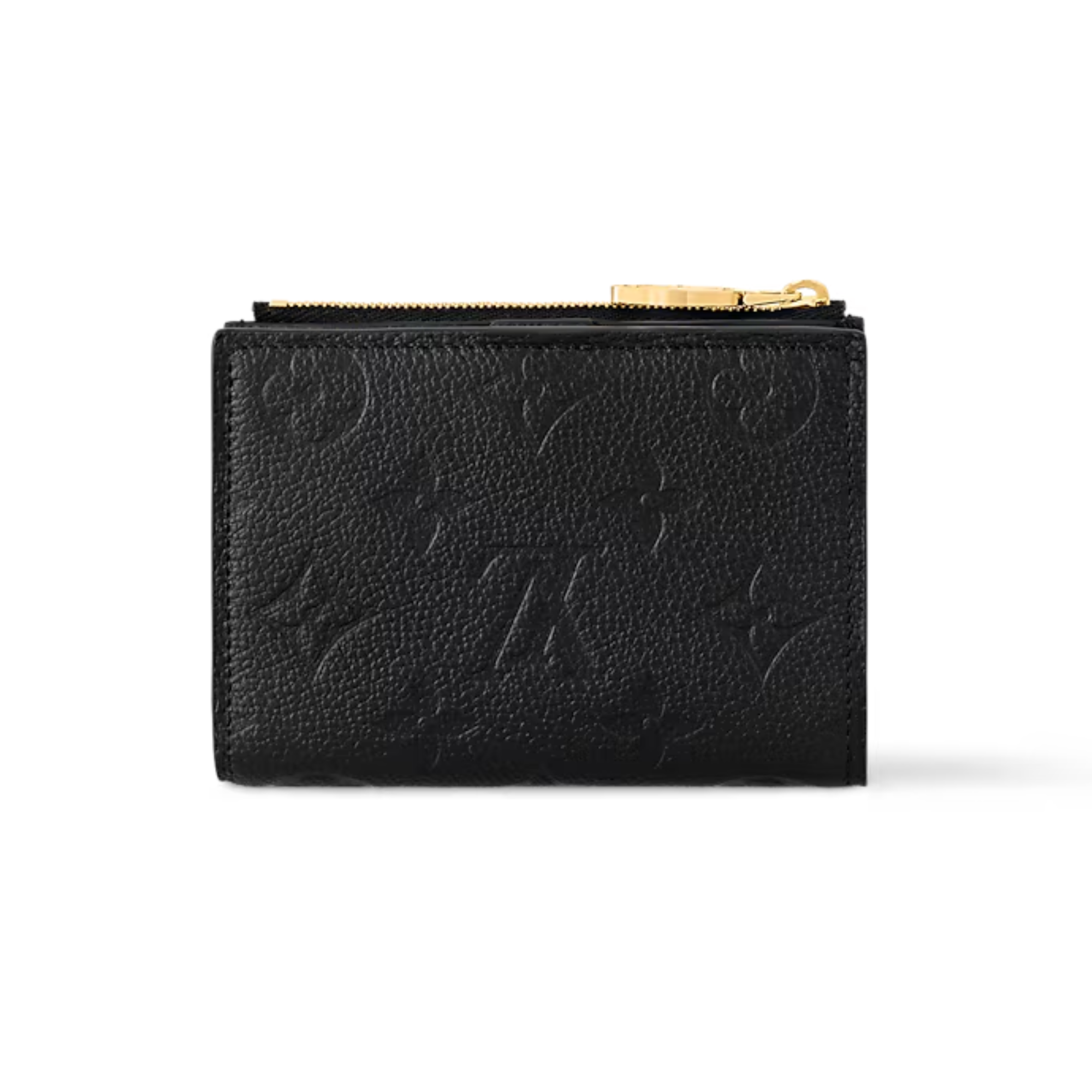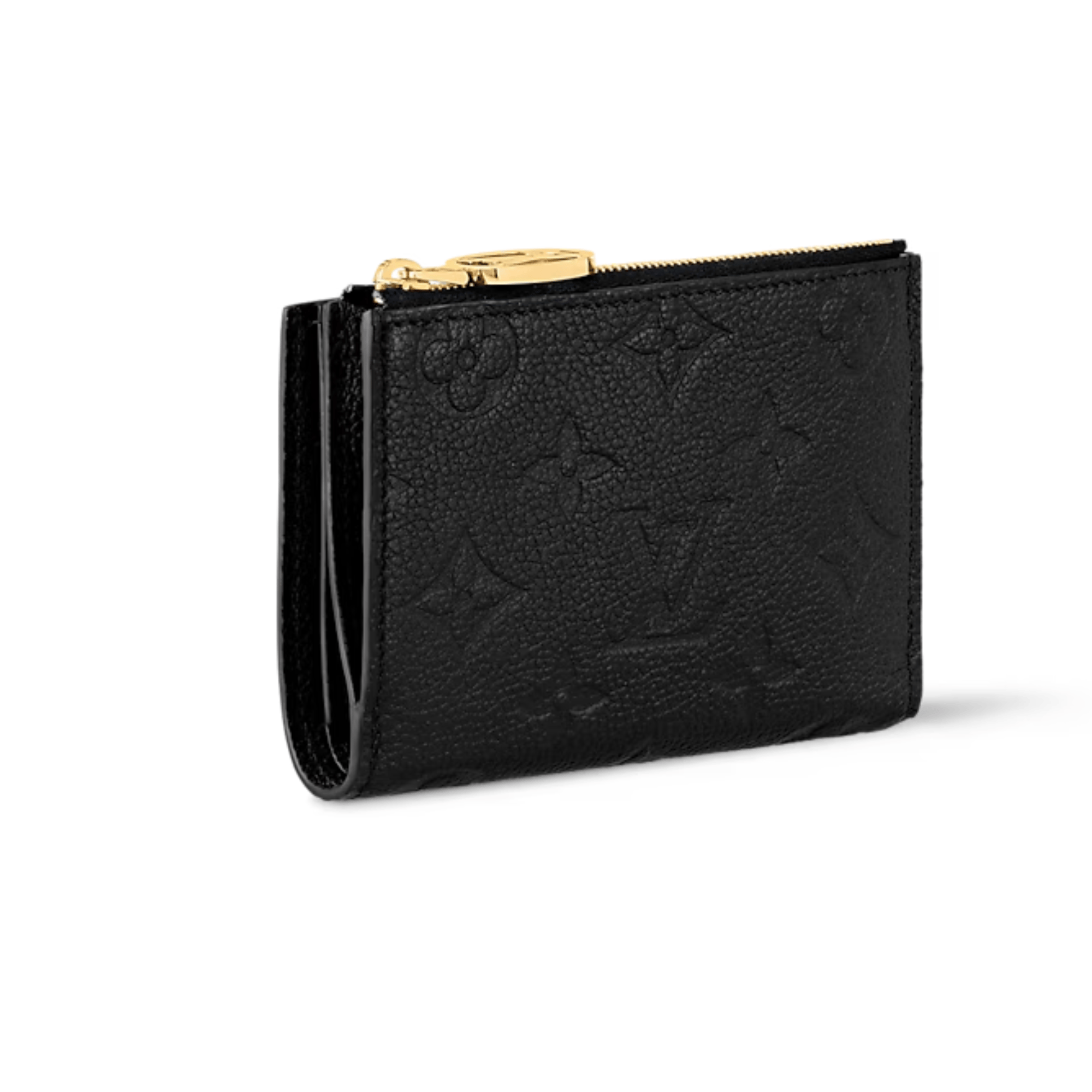 The compact Lisa wallet is reinterpreted in supple Monogram Empreinte leather, which is embossed with the Monogram pattern. This neat wallet is notable for its gusseted coin pocket with an LV Circle charm on the zip pull. Inside, it offers a bill compartment, two flat pockets and four card slots.