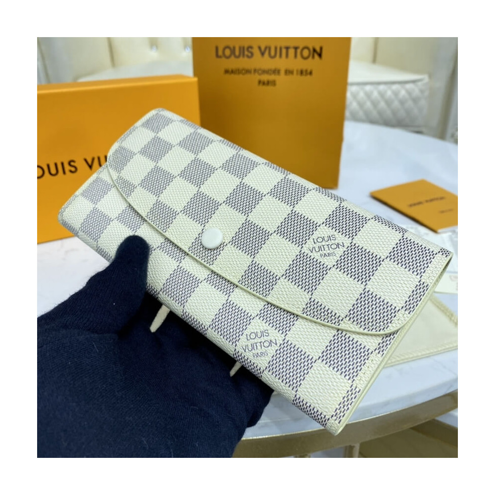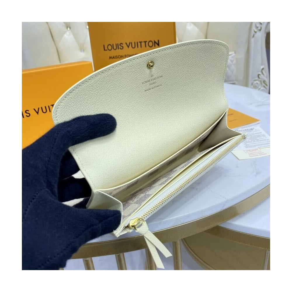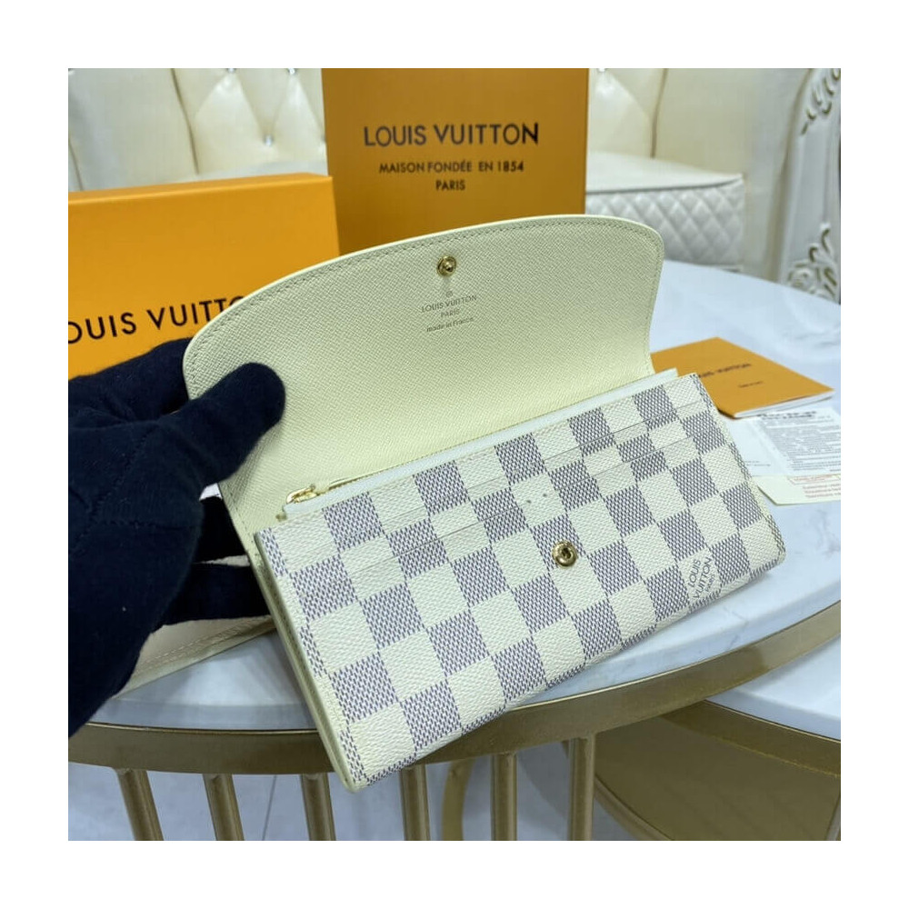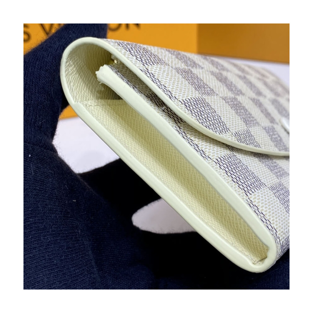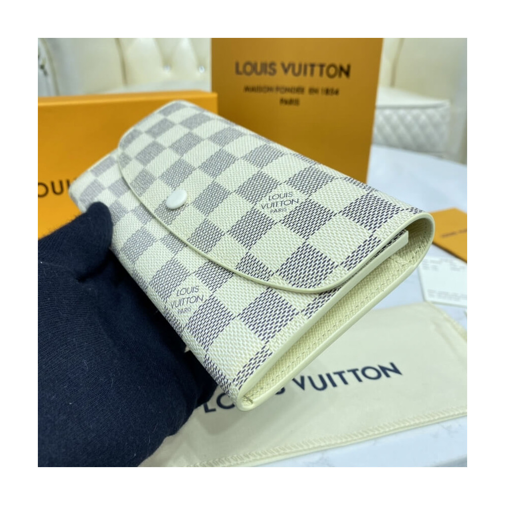The Emilie Wallet in Damier Azur canvas is a simple yet elegant design lined with grained cowhide leather. Its envelope-style flap opens to reveal a spacious interior compartment, zipped coin pocket and four card slots. With its slim-line format, the Emilie fits into any city bag and can also double as a clutch.