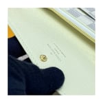 The Emilie Wallet in Damier Azur canvas is a simple yet elegant design lined with grained cowhide leather. Its envelope-style flap opens to reveal a spacious interior compartment, zipped coin pocket and four card slots. With its slim-line format, the Emilie fits into any city bag and can also double as a clutch.