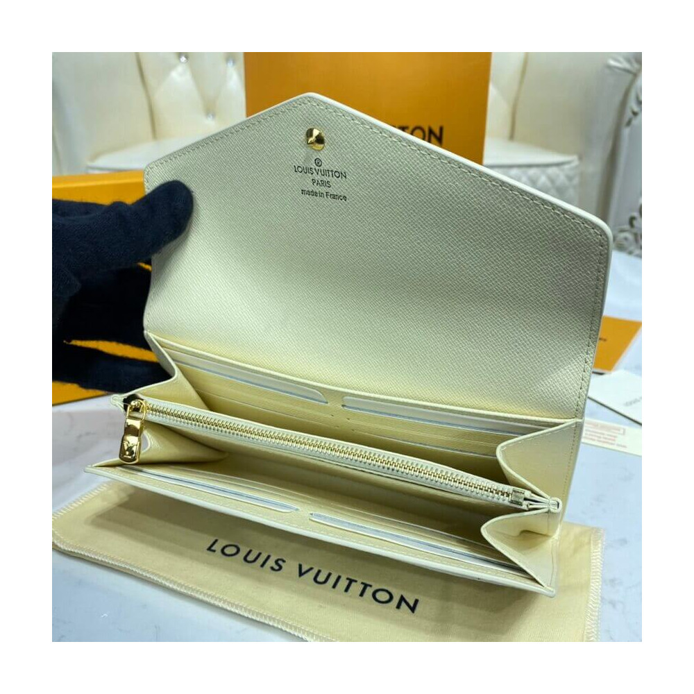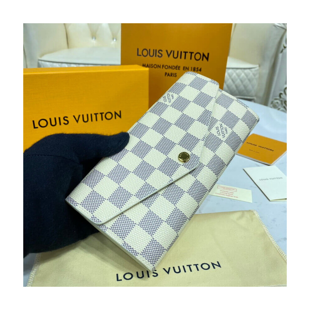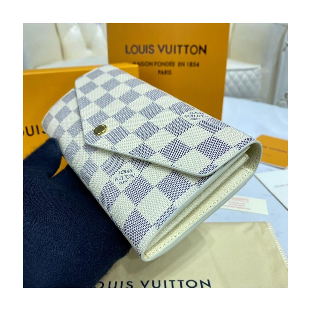 Damier Azur canvas brings a fresh look to Louis Vuitton’s Sarah Wallet, a timeless model with a simple, elegant exterior and a well-organised interior. Its envelope-style flap, which is secured with a gold-tone press stud, opens to reveal two large compartments, multiple card slots and a zipped coin pocket.