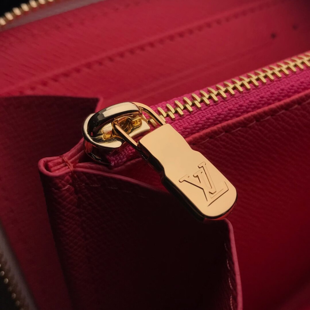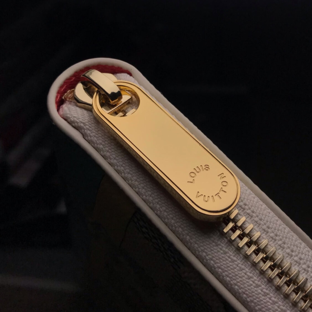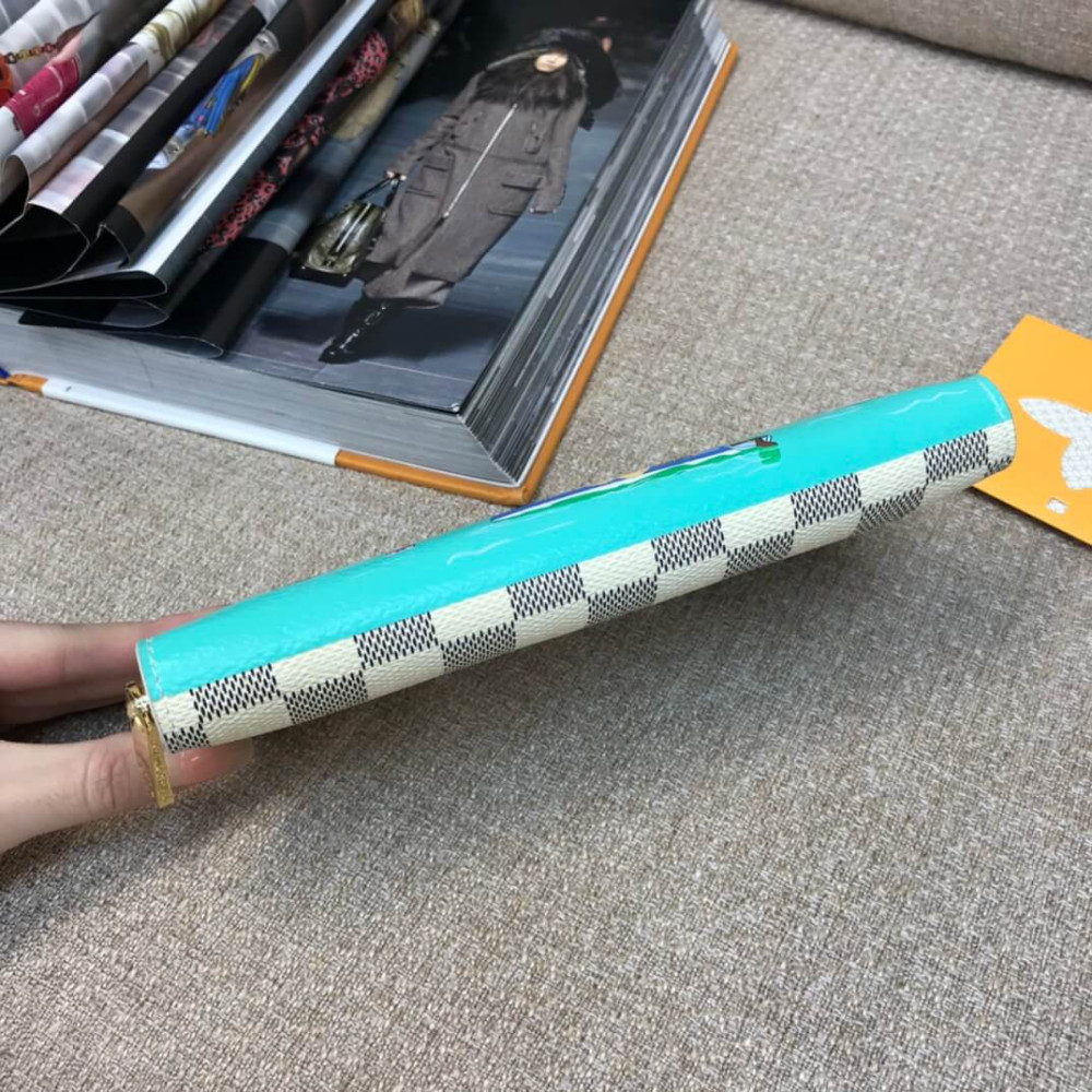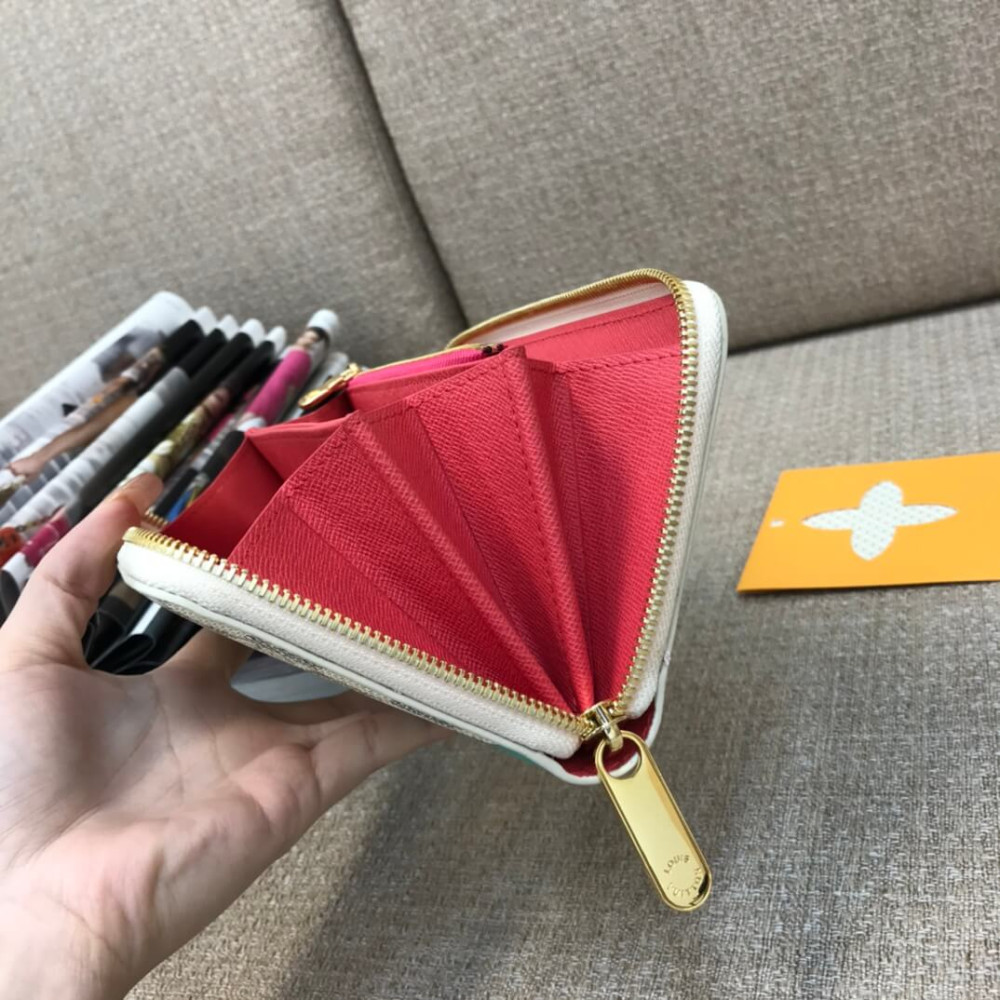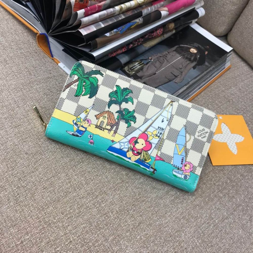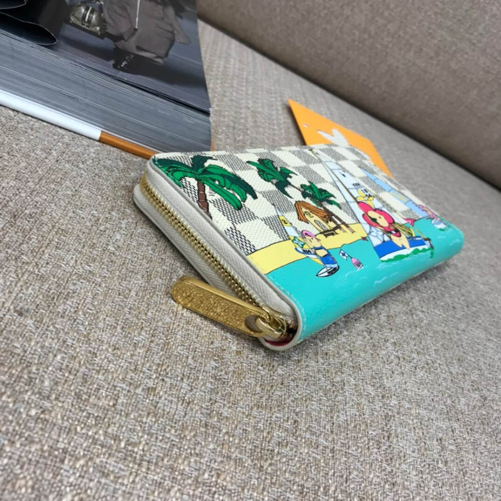 This collectible version of the Zippy Wallet in Damier Azur coated canvas is embellished with a lovely print of Vivienne, the House mascot, in a sailboat race with her friends. Inside this practical wallet is a cleverly designed interior, lined in dragon-fruit pink leather, with numerous pockets, compartments, and card slots.