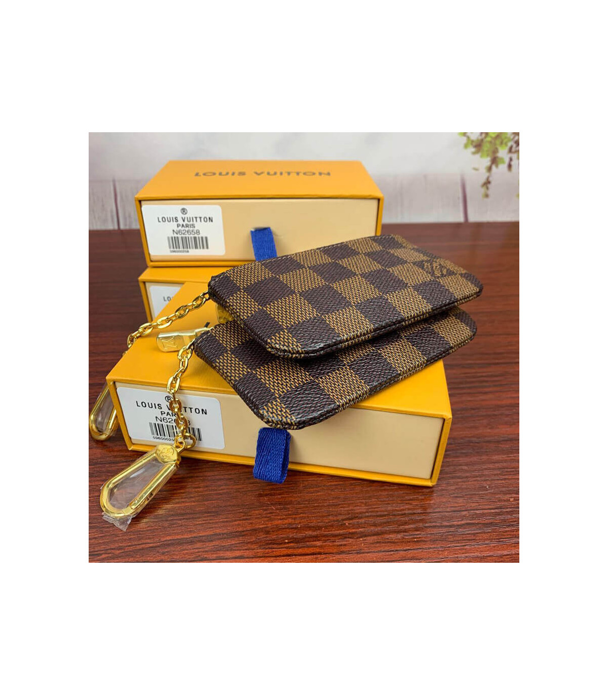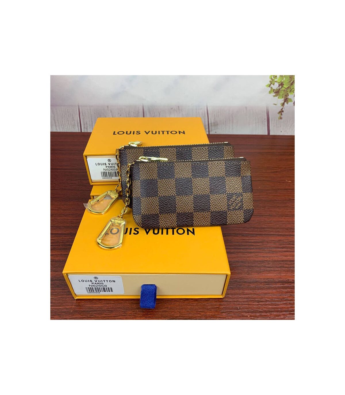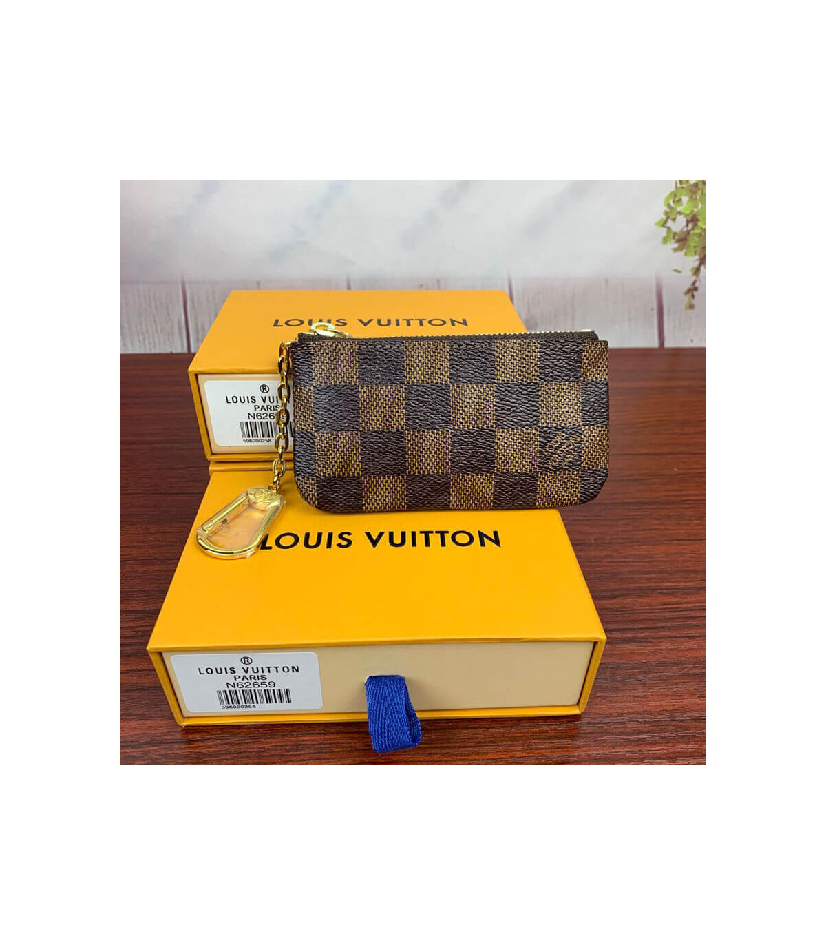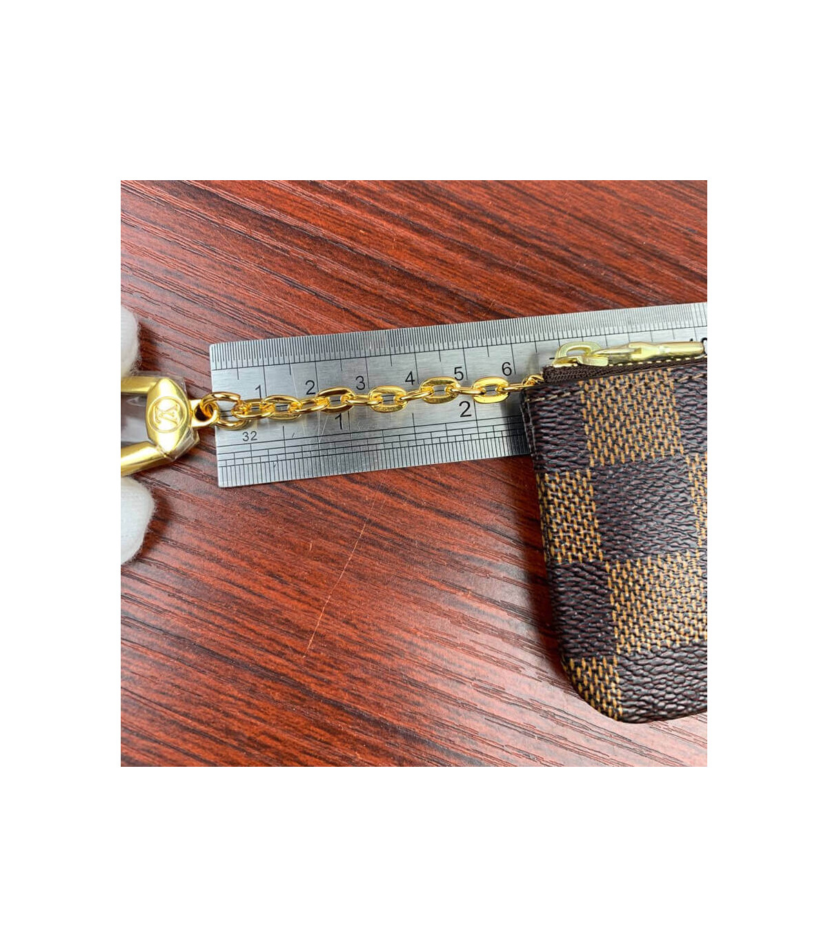 Crafted from historic Damier Ebene canvas, the Key Pouch is a simple design elevated by refined details, such as an LV-engraved zip and grained-leather lining. Playful and practical, it can be carried in different ways and will hold cash, cards and other small items as well as keys.