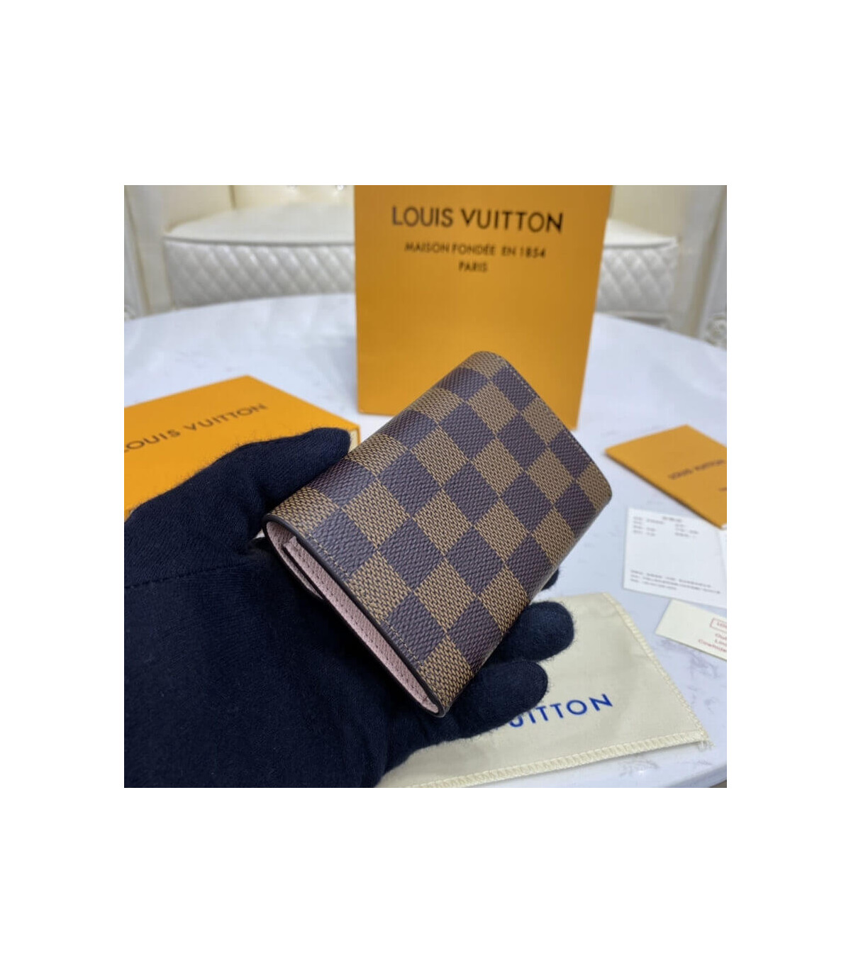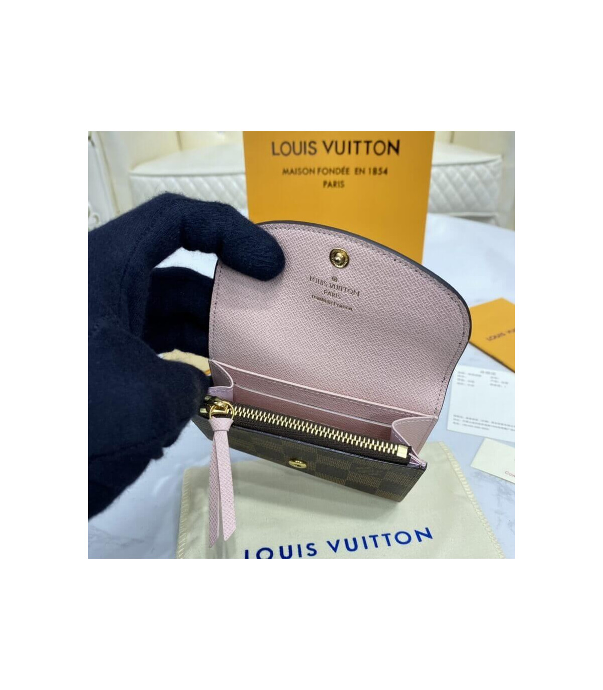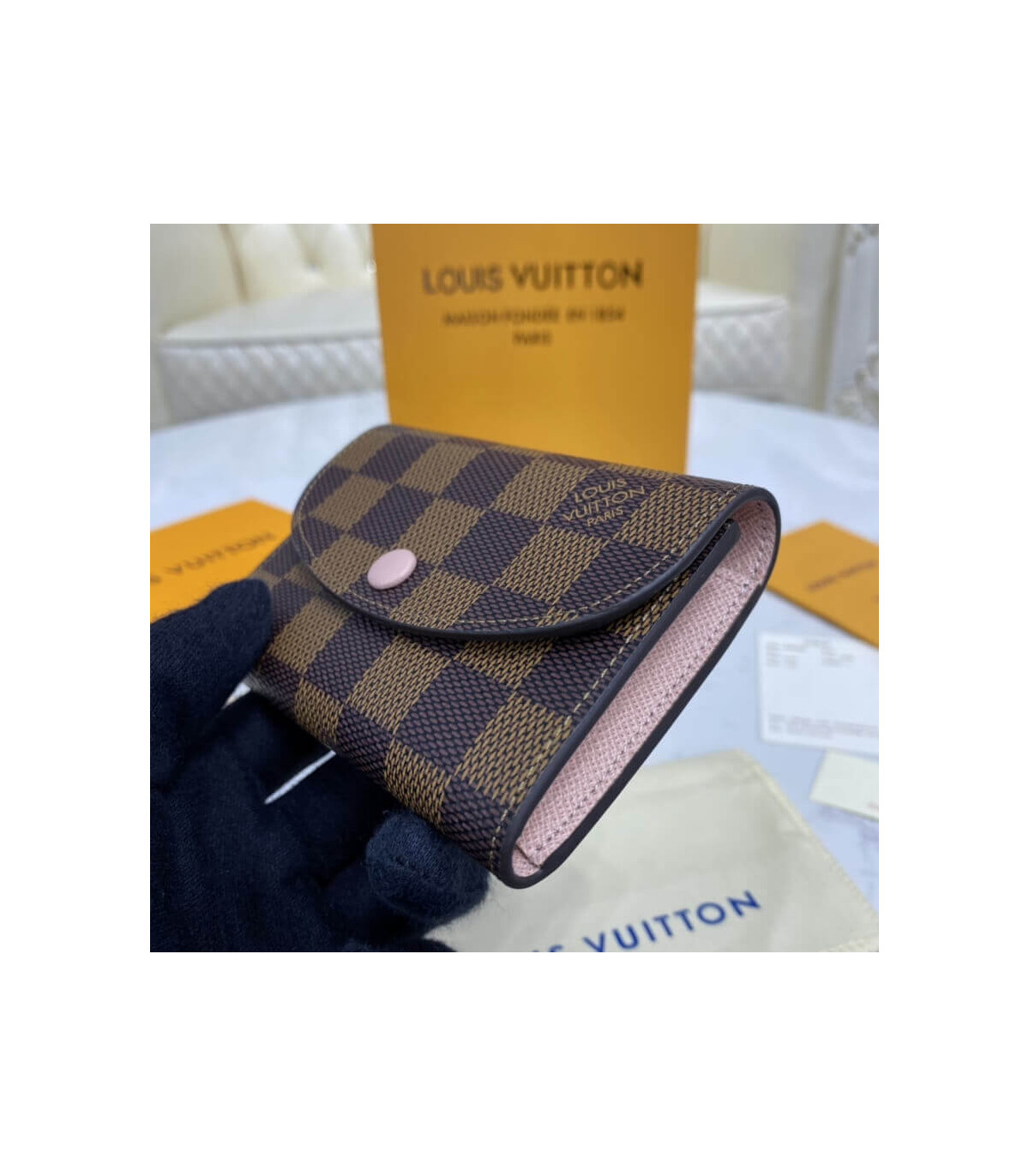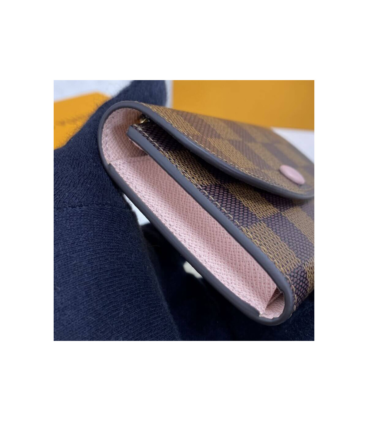 Combining Damier Ebene canvas with colorful grained cowhide leather, the Rosalie coin purse is a sweet, feminine design. Its tiny proportions allow it to slip easily into a bag or pocket, yet it is surprisingly spacious. Its distinctive rounded flap is secured with a color-matched press-stud.
