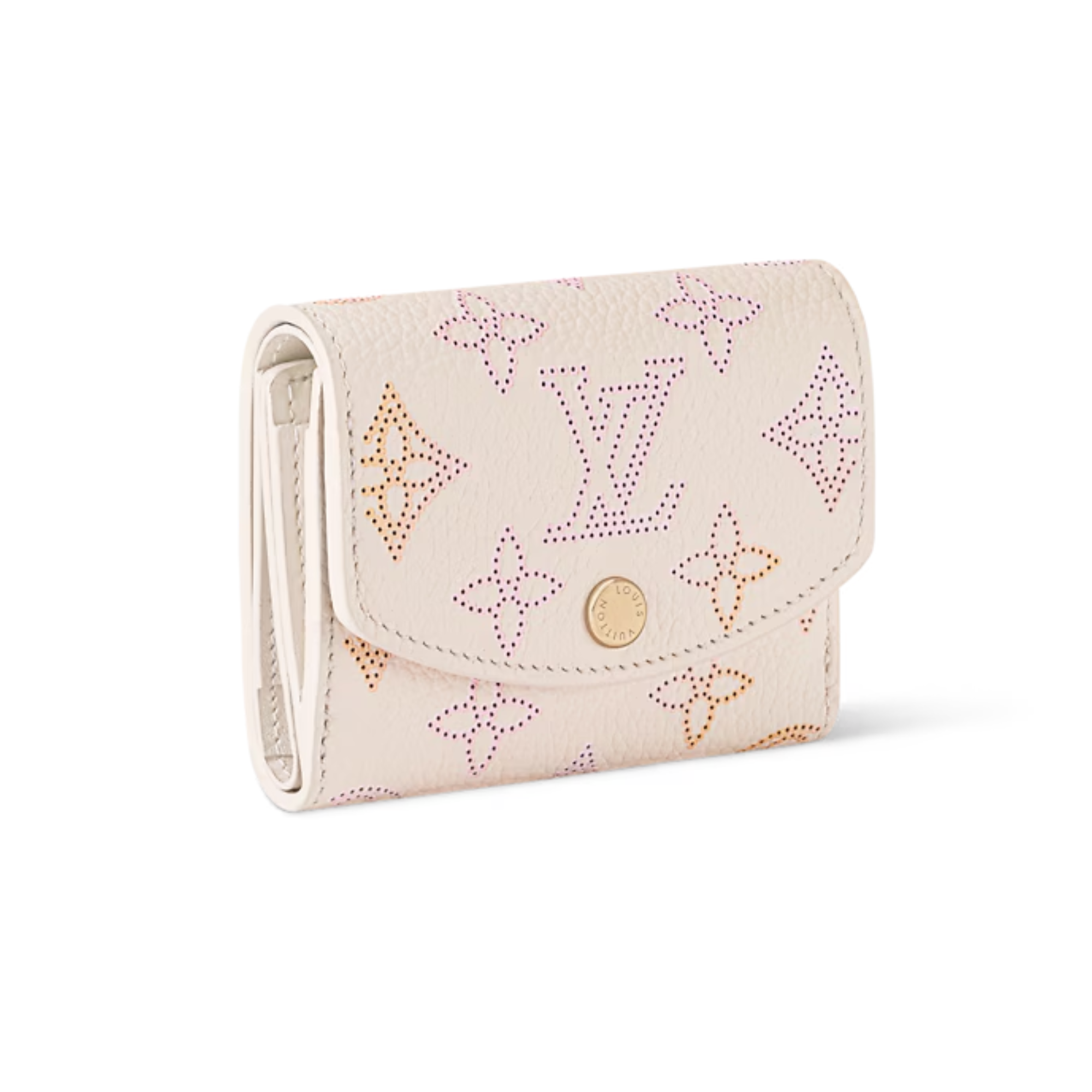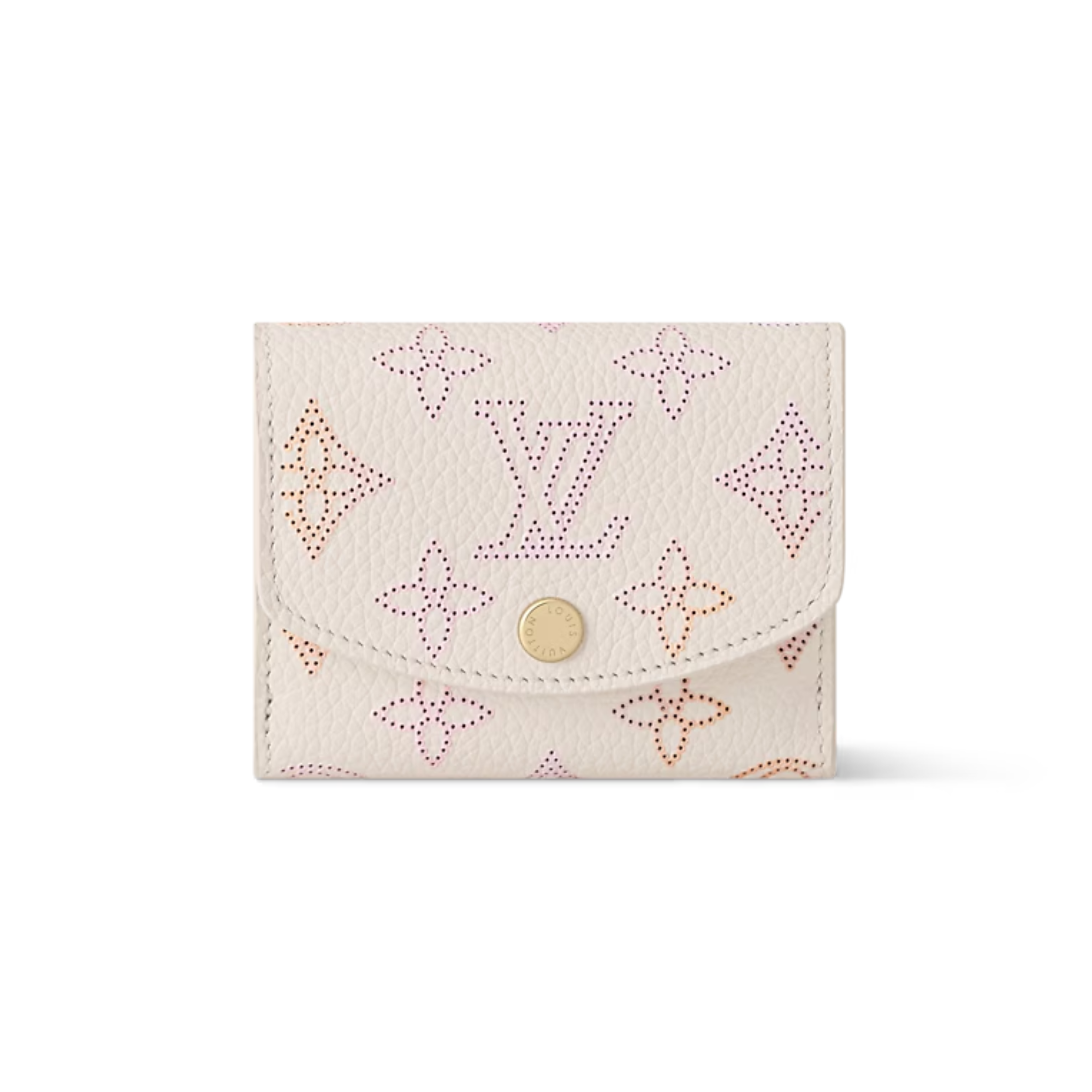 The Iris XS wallet is updated in a seasonal Dream colorway that complements any accessory it is paired with. The compact design is crafted from decorated with signature Mahina Monogram perforations and is finished with subtle gold-toned hardware. It is fitted with two pockets to keep bills and coins secure, as well as four card slots.