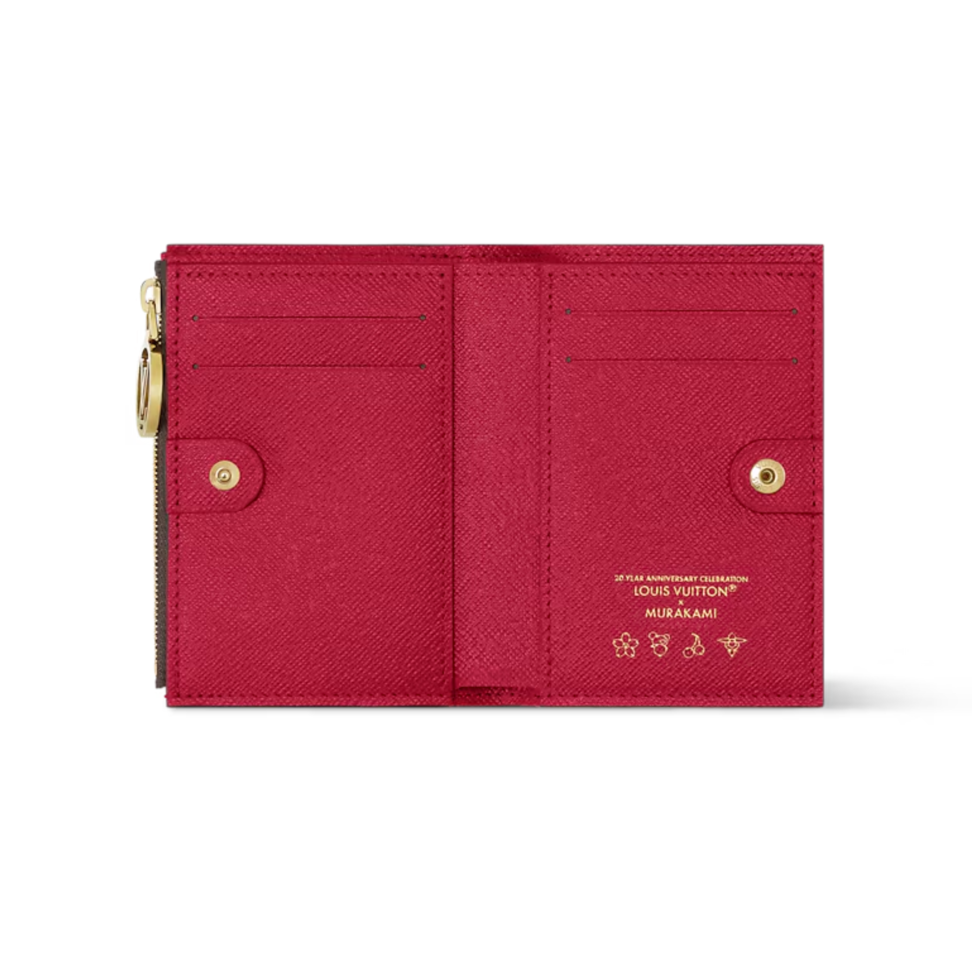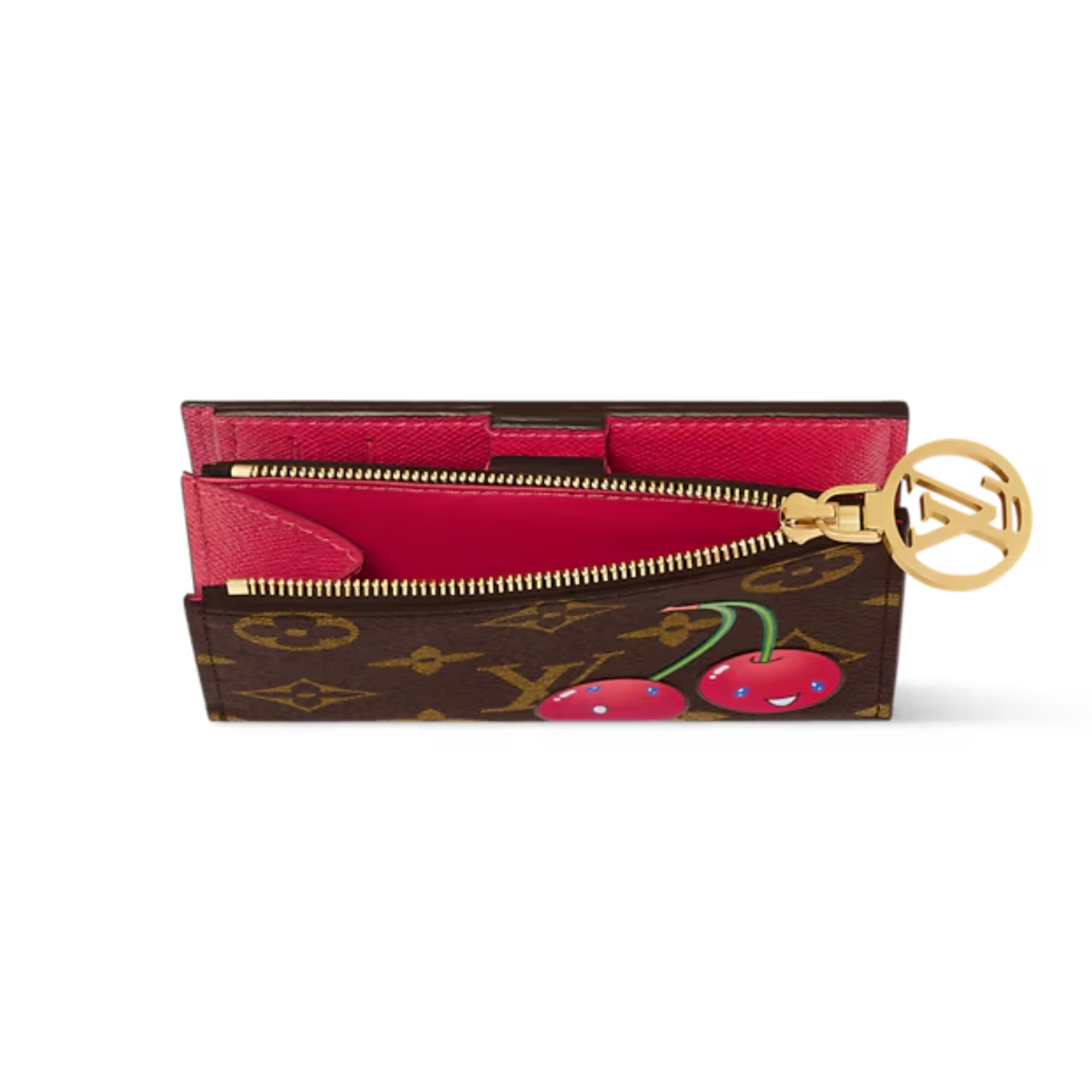 Playful and practical, the Lisa wallet is reimagined as part of the re-edition of the Louis Vuitton x Murakami collection. It is crafted from classic Monogram coated canvas embellished with a cheerful cherry motif in the world-renowned Japanese artist’s kawaii aesthetic. The inside is organized into multiple compartments to stow bills, cards and coins, with a LV Circle zipper pull adding a final seasonal flourish to the closure.