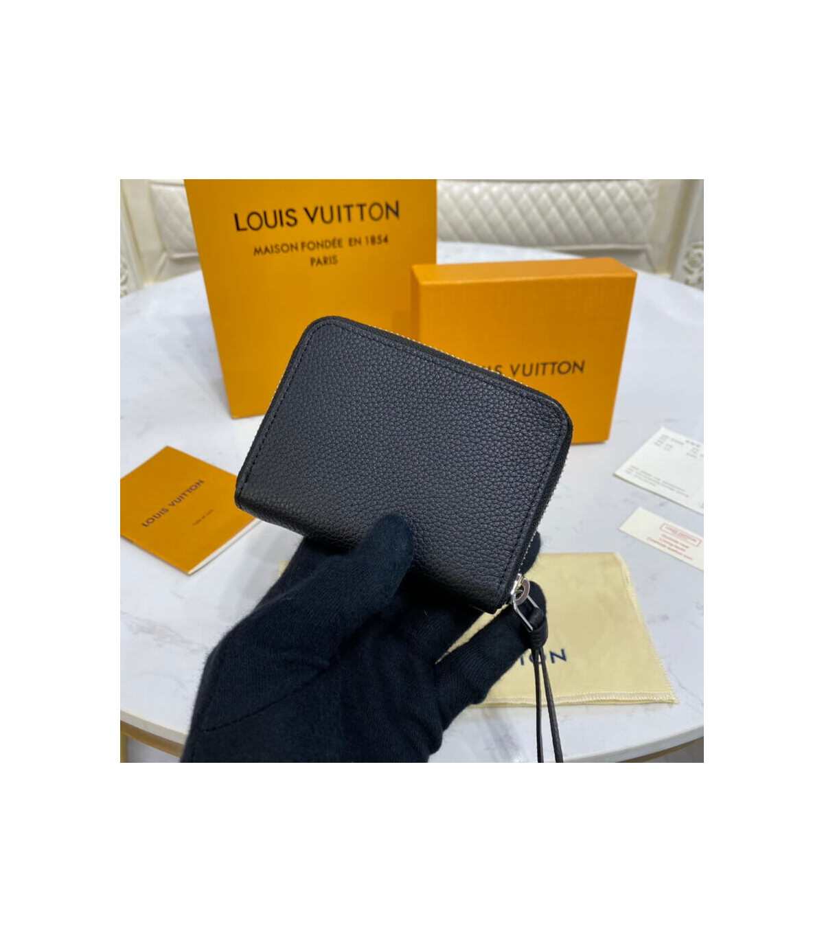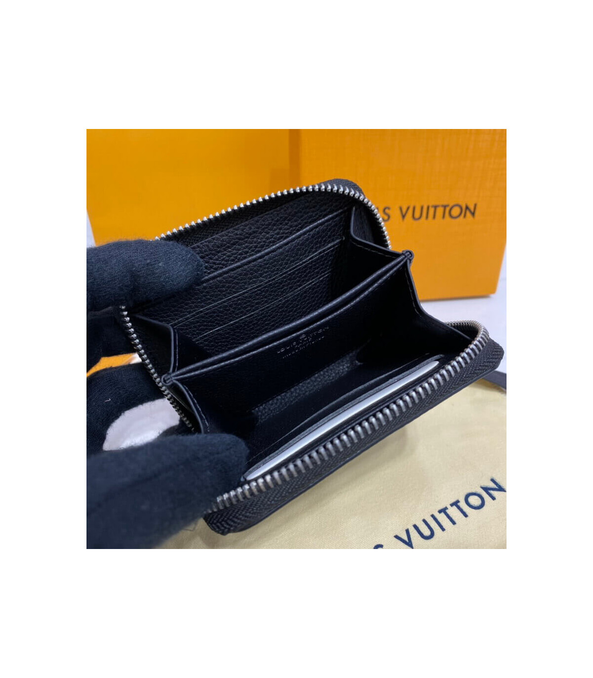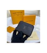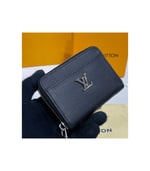 The Lockme Zippy coin purse combines the practicality of the classic Zippy coin purse with the sophistication of the Lockme leather-goods line. Crafted from smooth calf leather, it is embellished with an LV Initials accessory on the outside pocket. The purse unzips to reveal space for bills and cards as well as coins.