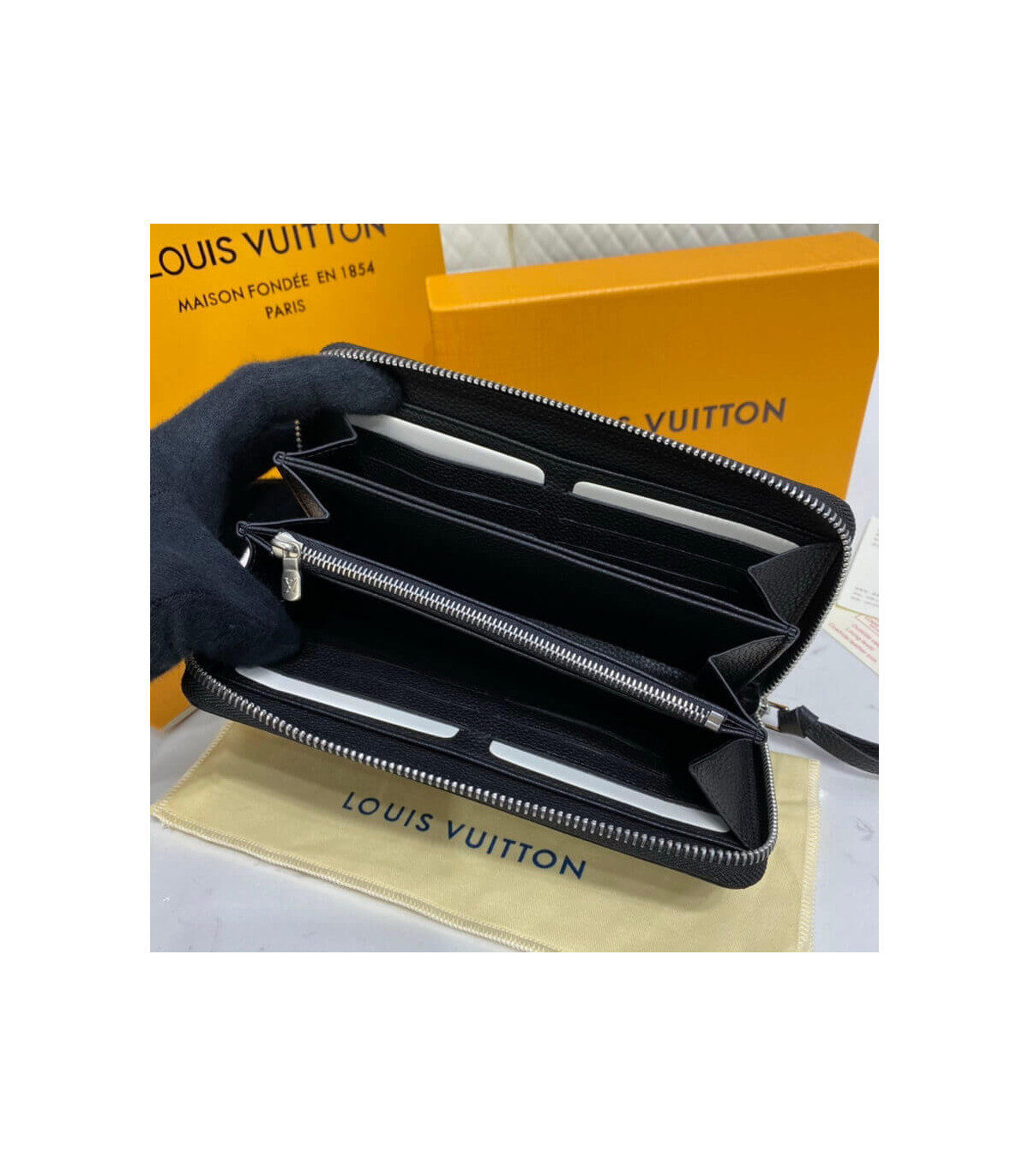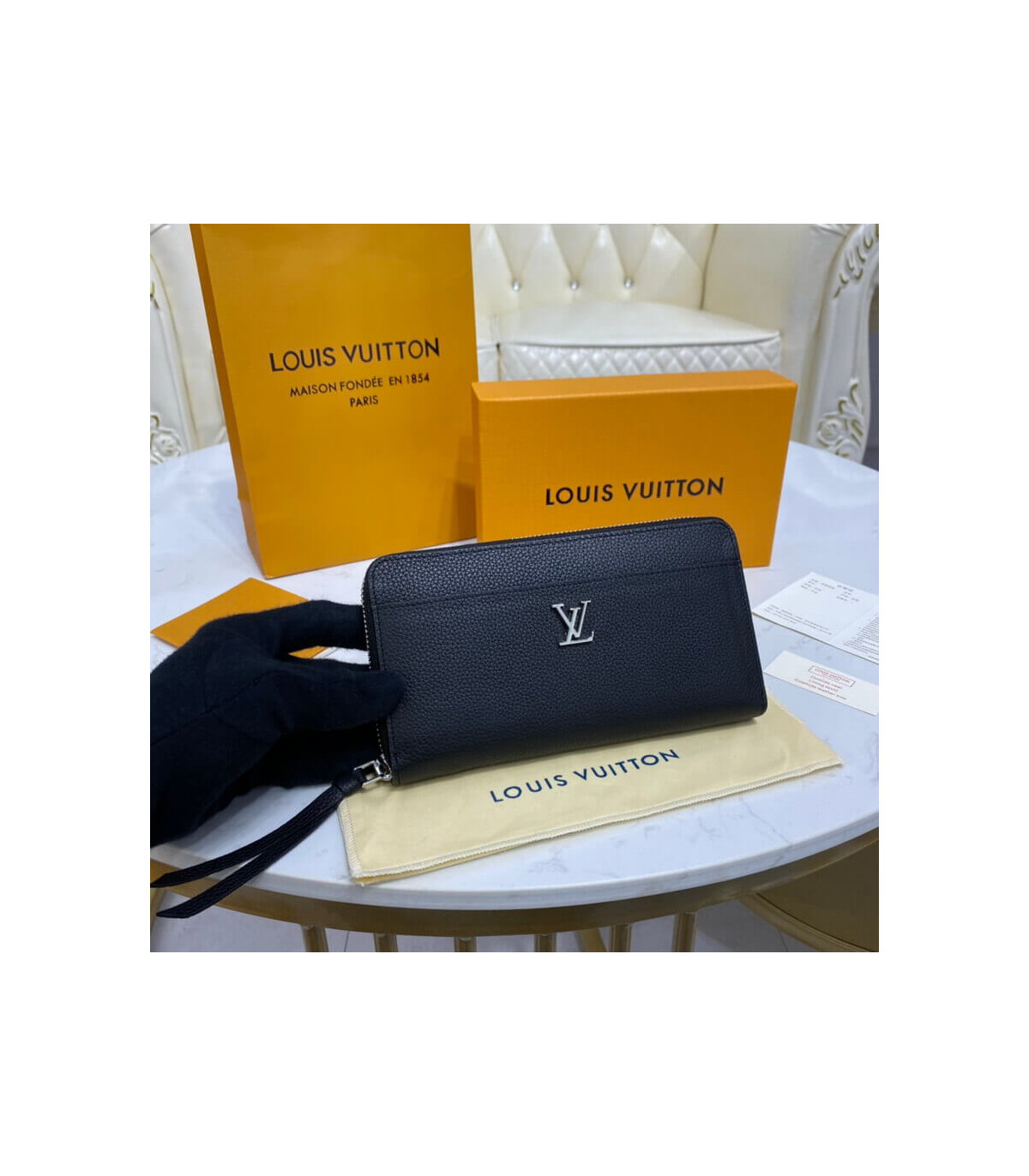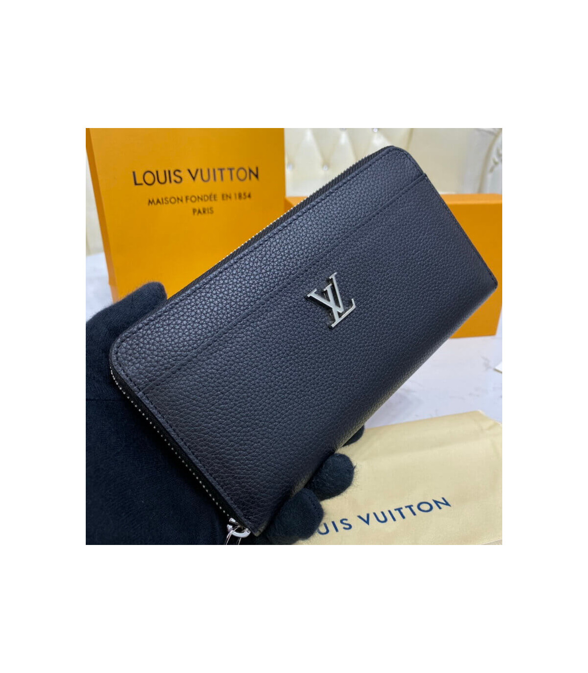 The Zippy Lockme wallet in supple calf leather combines the iconic design of the Zippy wallet with the key signatures of the fashionable Lockme collection: the LV Initials accessory and the front pocket offering easy access to items such as tickets. The Zippy Lockme contains numerous pockets and compartments within a secure, zip-around format.