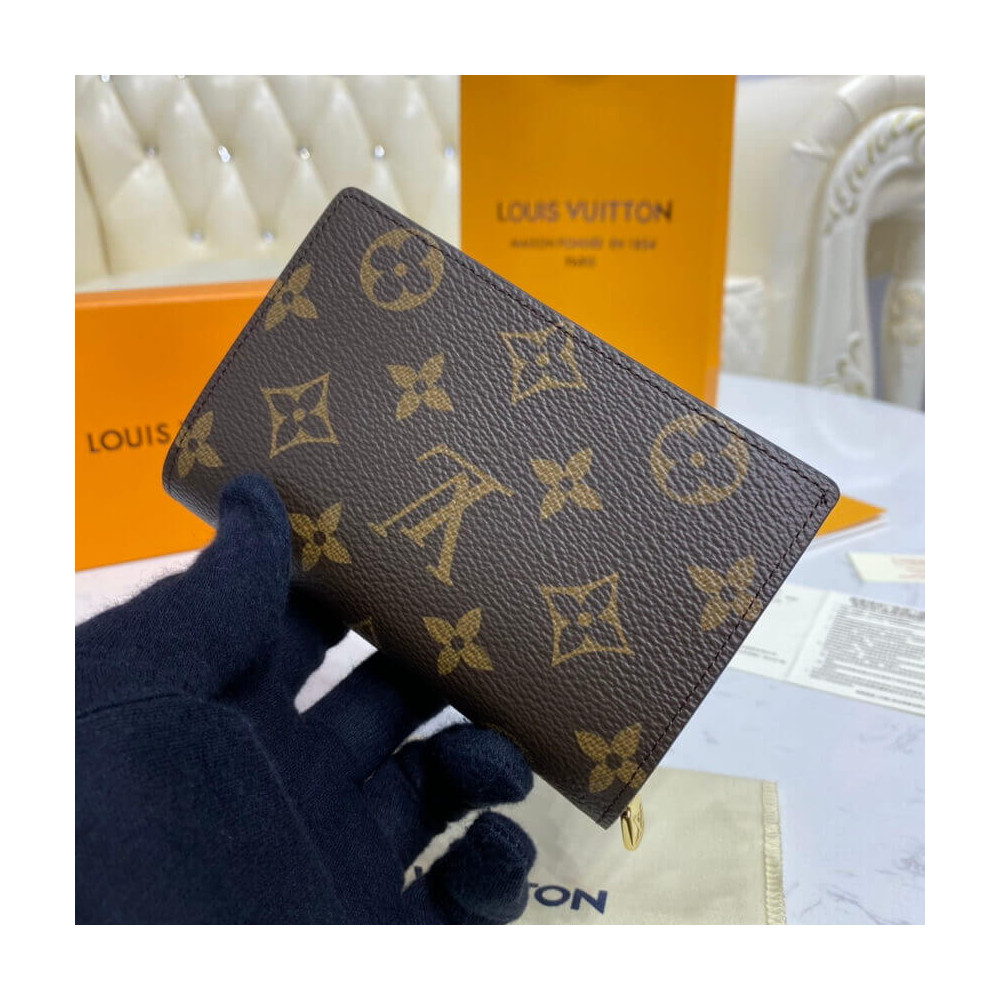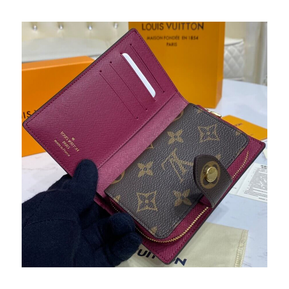 The Juliette Wallet is crafted from Louis Vuitton’s iconic Monogram canvas with a front pocket and lining in cowhide leather. This ideal medium-size compact wallet offers space for cards and notes, as well as a generous zipped compartment for coins. It closes with a gold-tone press stud engraved with the House signature.