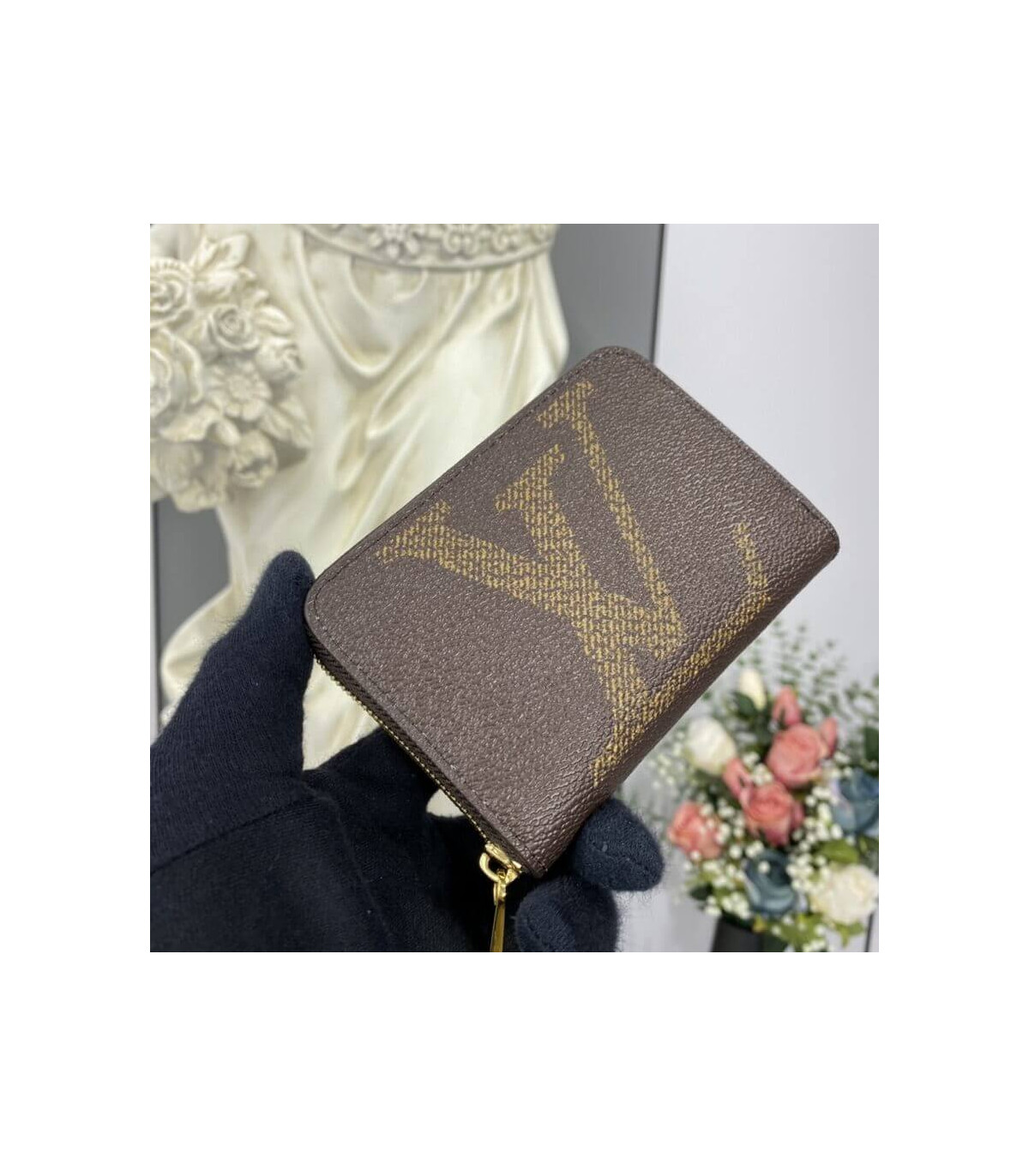 The maxi-sized LV initials and Monogram blossoms of the Giant Monogram canvas make the Zippy Coin Purse strikingly graphic. The purse’s compact design elegantly holds cash and credit cards in a secure zip-around format.