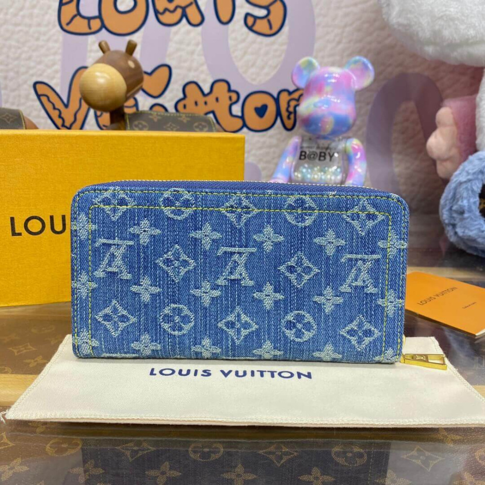 Fashioned from denim with the Monogram pattern woven into the cotton, this Zippy Wallet is stone washed, making each model unique. The House’s classic all-in-one wallet, the Zippy closes with a zipper and has a well-designed interior with three gusseted compartments as well as a zipped coin pocket, two flat pockets, and numerous card slots.