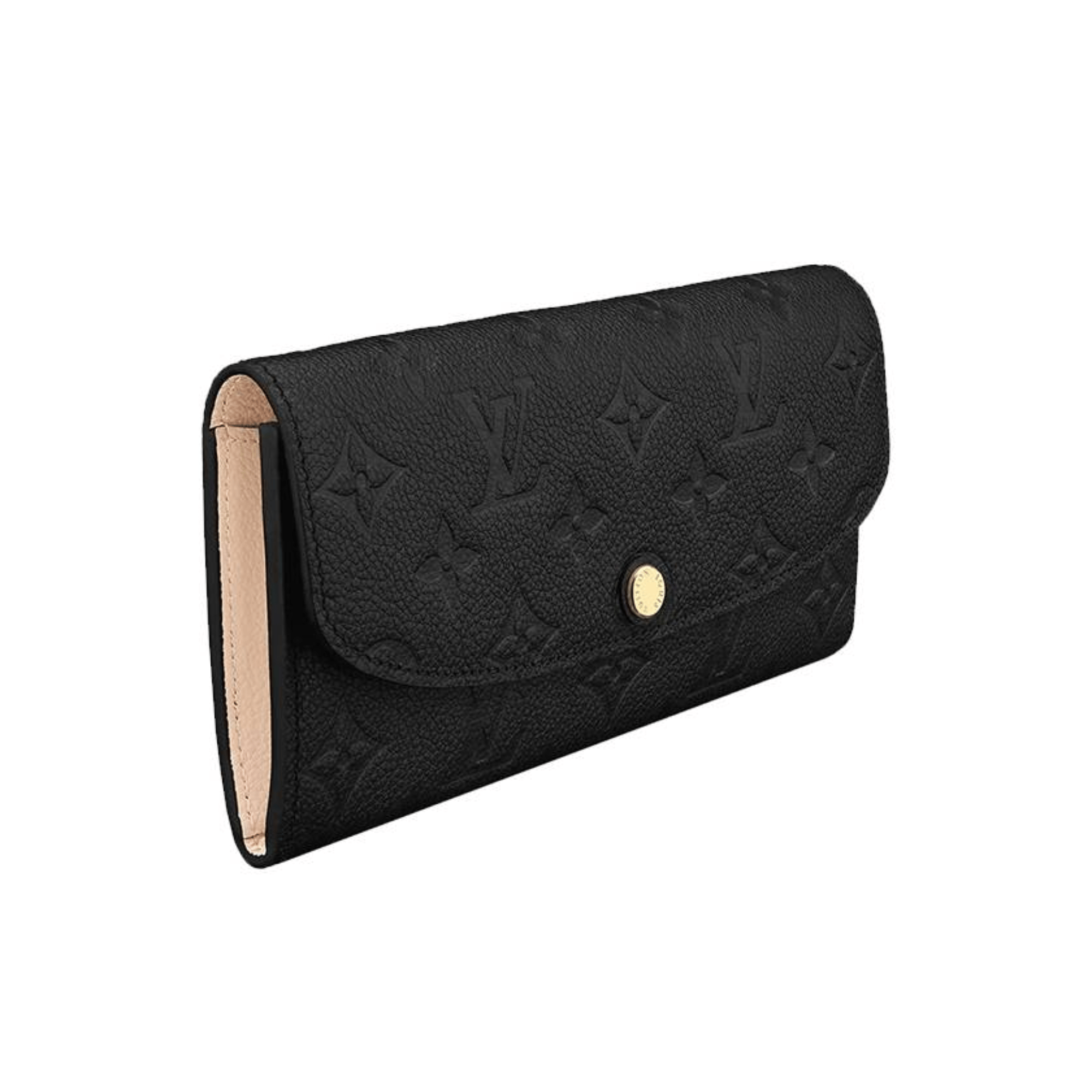 The Emilie wallet is crafted from Monogram Empreinte leather, embossed with the iconic Monogram pattern, and lined with supple grained leather in a contrasting shade. Its envelope-style flap, which is secured with a color-matched press-stud, lifts to reveal a well-organized interior with a large compartment, zipped coin pocket and card slots.