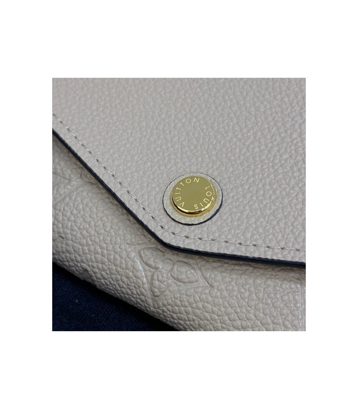 The Sarah wallet combines Monogram Empreinte leather, embossed with Louis Vuitton’s iconic Monogram pattern, with a grained-leather flap. The supple feel complements the elegant design of this envelope-style wallet. Its well-organized interior features two spacious compartments, a central zipped coin pocket and numerous card slots.