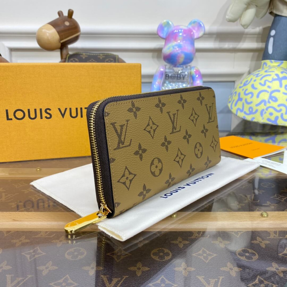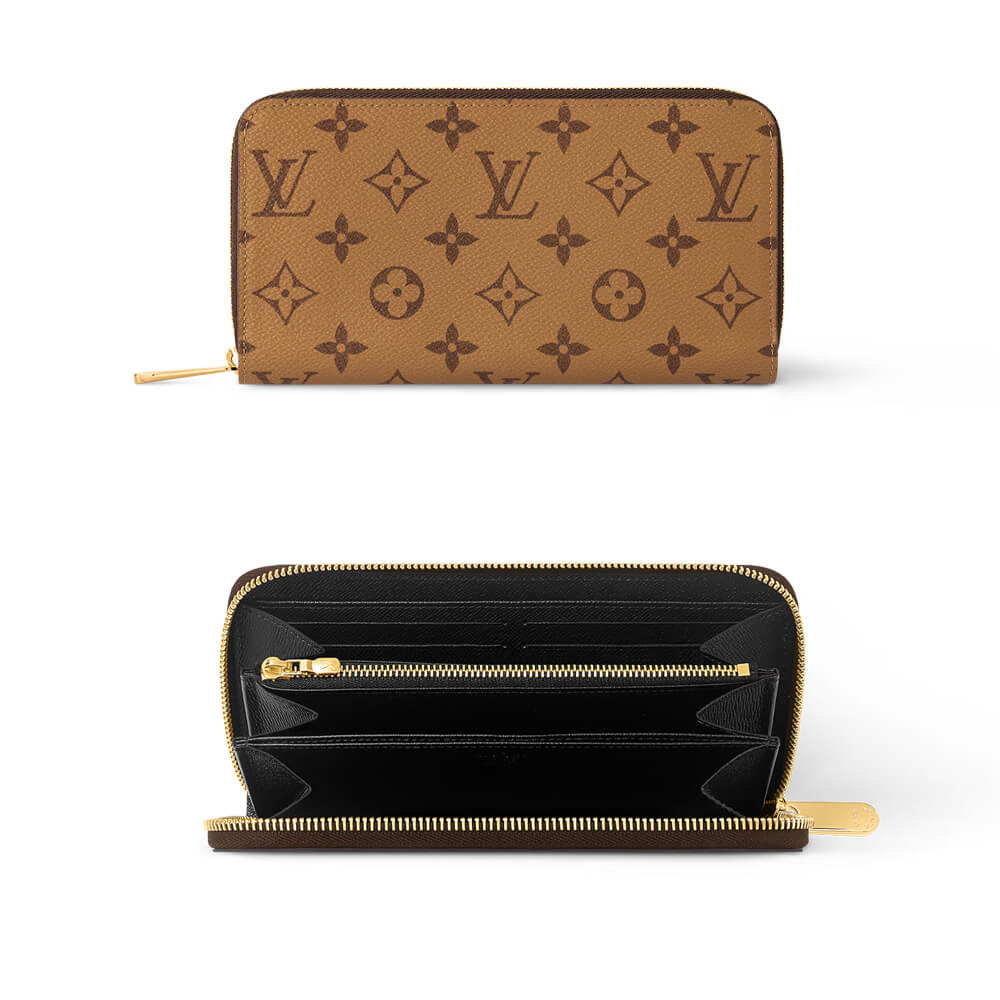 The iconic Zippy wallet is reinterpreted in Louis Vuitton’s signature Monogram Reverse canvas, which is complemented by a leather lining and a gold-tone zip. This classic, slim-line wallet opens to reveal a well-organized interior with numerous practical features, including three generous compartments, a zipped coin pocket and 12 card slots.