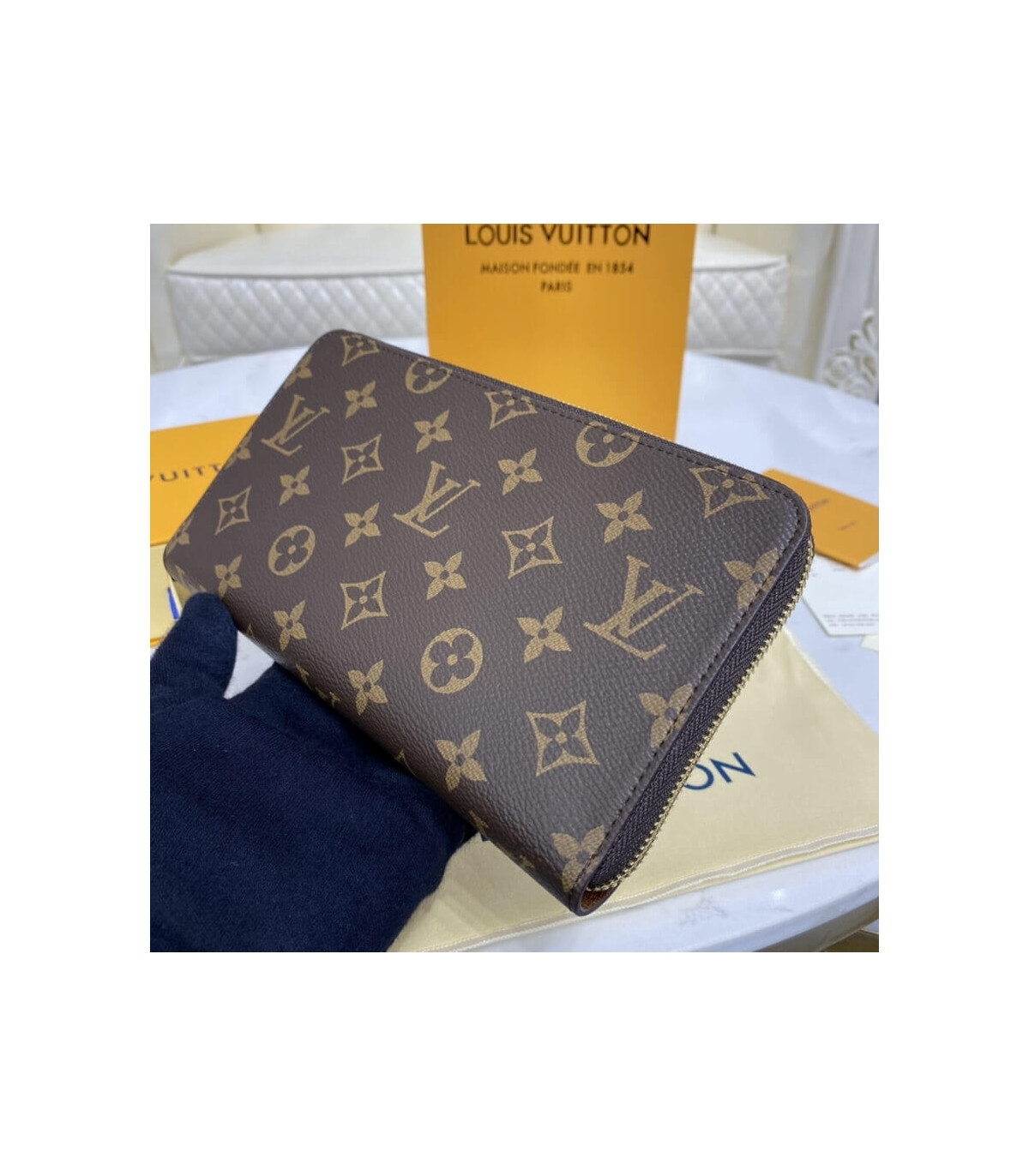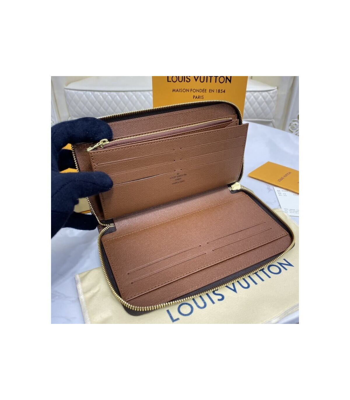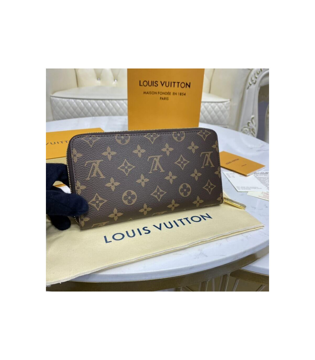 Louis Vuitton’s iconic Zippy Organizer wallet in historic Monogram canvas combines sleek design with true functionality, all in an extremely compact format. Its all-round zipper opens to reveal an array of practical features, including multiple credit card slots, a zipped coin compartment and a large pocket for plane tickets.