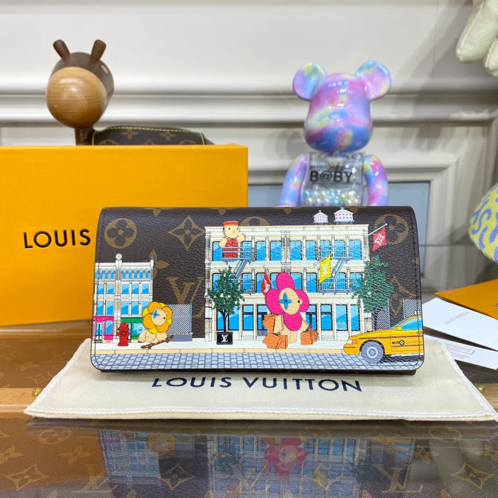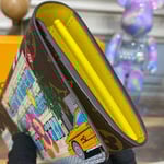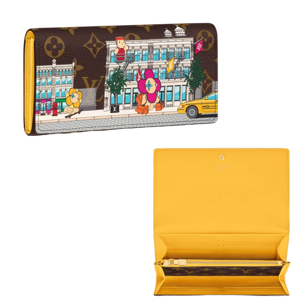 Part of the Vivienne Holidays 2022 collection, this exclusive edition of the Sarah wallet evokes the spirit of travel with a colorful tribute to New York. A detailed print on Monogram canvas features Louis Vuitton’s Vivienne mascot alongside the House’s Soho boutique and an iconic yellow cab. A yellow leather lining complements this collectible version of this classic flap wallet.