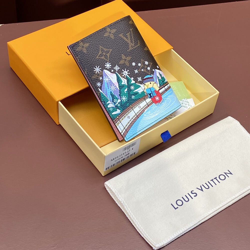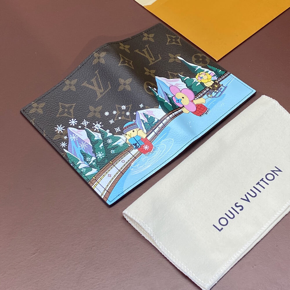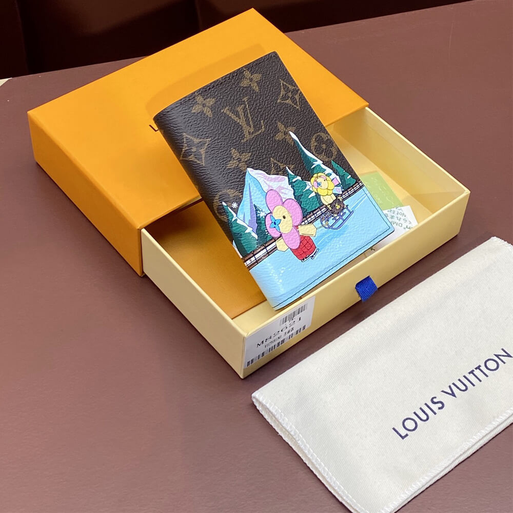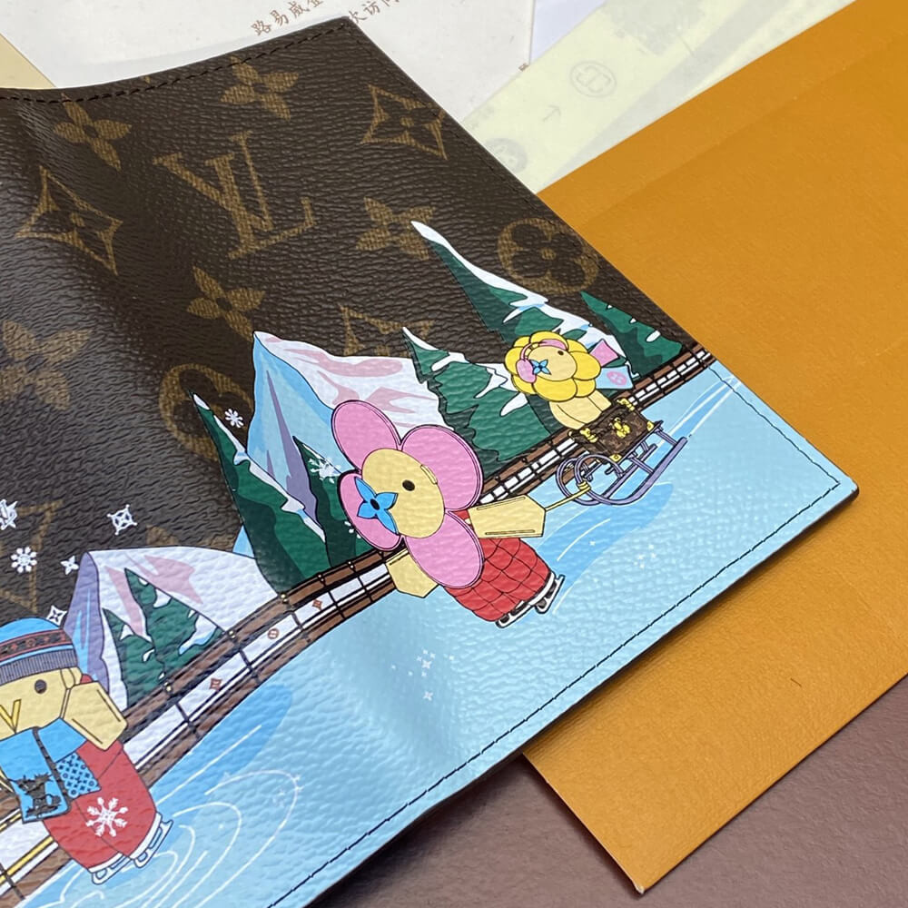 Fashioned from Monogram coated canvas and lined with grained leather in a soft pink, this Passport Cover features a print of Vivienne, the Louis Vuitton mascot, ice skating with a friend. With four inside card slots and a flat pocket, this collectible edition of the Passport Cover is an elegant gift for travel lovers.