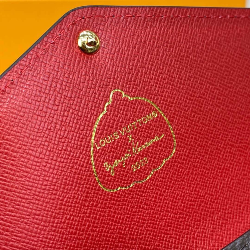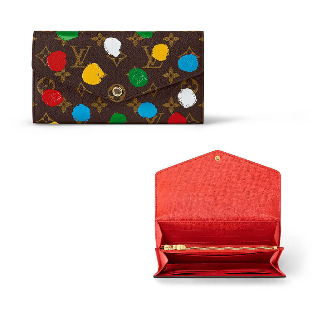 For the second Louis Vuitton x Yayoi Kusama collection, the LVxYK Sarah wallet comes arrayed with the acclaimed Japanese artist’s signature dots. After her first collaboration with the House a decade ago, Kusama hand-painted a trunk with a joyful, colorful dotted pattern. The new version of this handy, versatile accessory reproduces those same dots, screen-printed on Monogram canvas with a striking 3D effect.