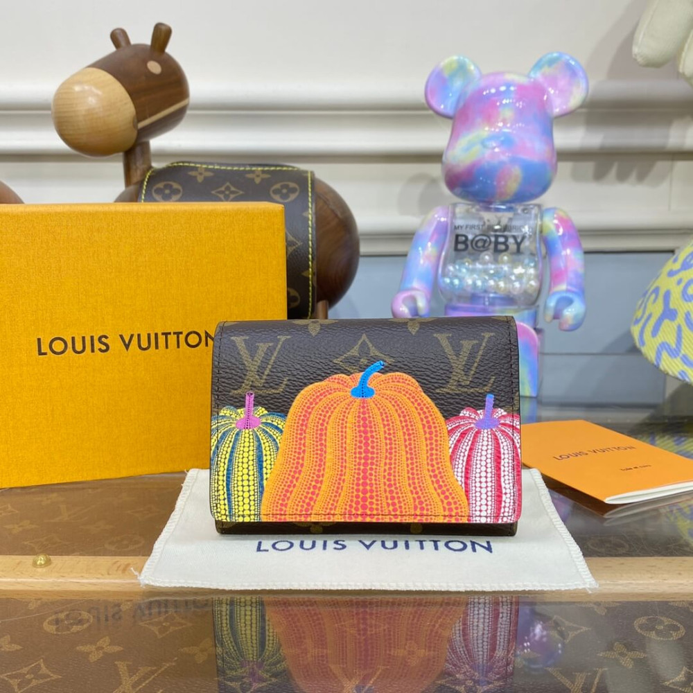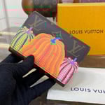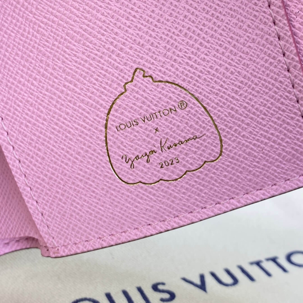 For the new Louis Vuitton x Yayoi Kusama collection, the LVxYK Victorine wallet pays homage to one of the renowned Japanese artist’s visual signatures. Kusama began drawing pumpkins as a child, and later made them a recurring theme in her paintings and sculptures. For this stylish, feminine wallet, Monogram canvas is enlivened with a trio of her stylized pumpkins in vibrant colors. An eye-catching, creative update of a classic accessory.
