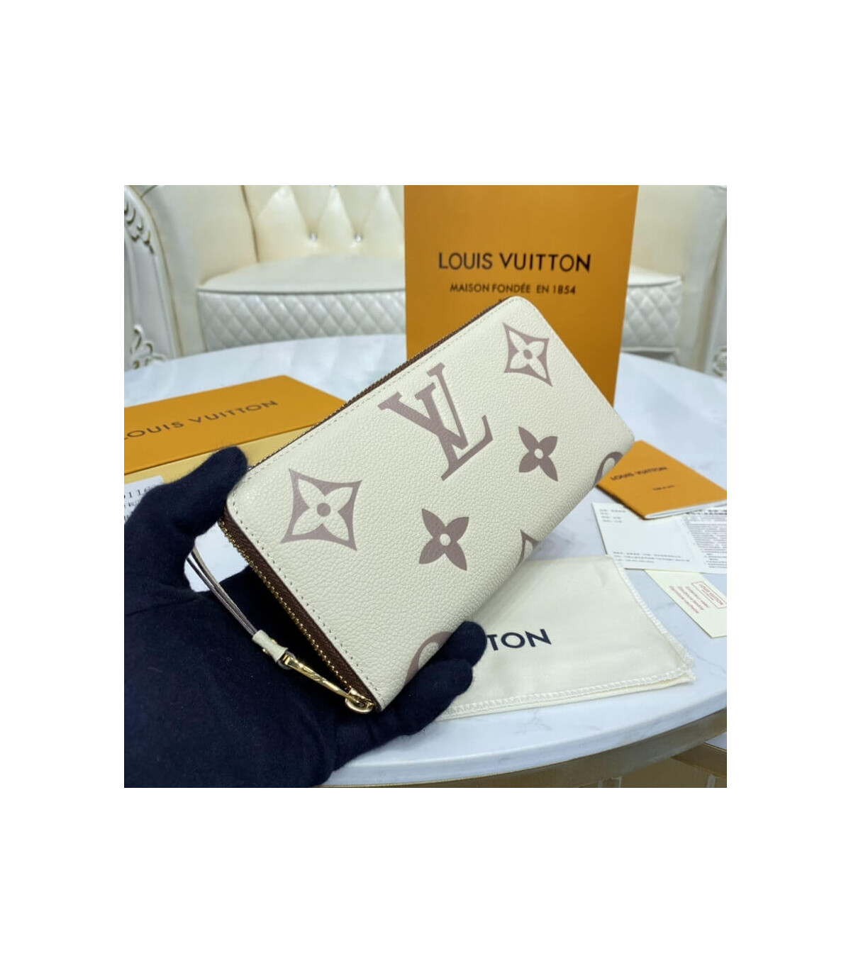 The Zippy Wallet is made from two-tone Monogram Empreinte leather, with the Monogram pattern both embossed and printed on the cowhide leather. The Zippy is an iconic House wallet known for its secure, zip-around closure and an array of inside pockets, compartments and card slots.