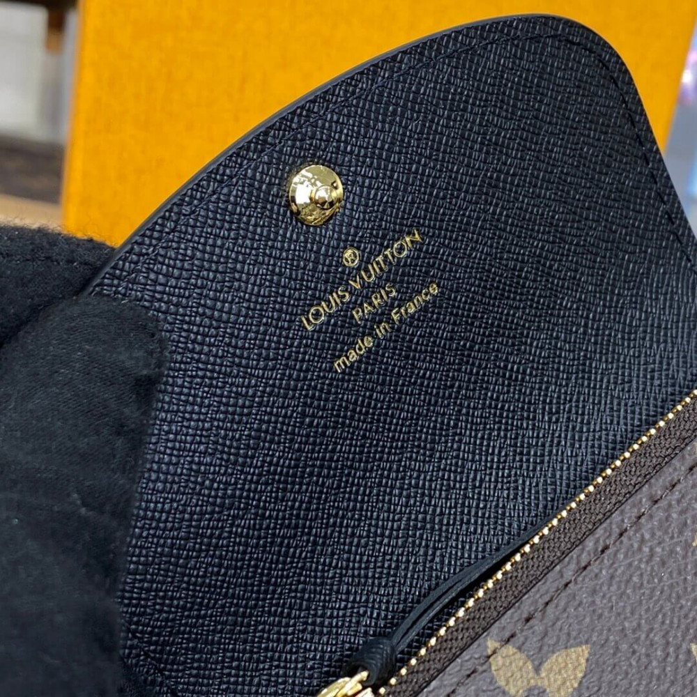 The Rosalie coin purse combines Monogram and Monogram Reverse canvas for a refined signature look. This tiny purse is distinguished by its rounded flap, which is secured with an engraved, gold-tone press-stud. Inside, it offers a flat pocket, a zipped pocket for coins and two card slots, while there is an additional flat pocket at the back.