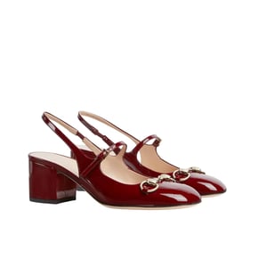 Gucci Women’S Horsebit Slingback Pump Gg Leather Rosso Ancora Red