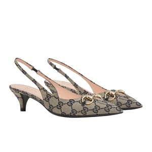Gucci Women’S Gg Canvas Slingback Pump Beige And Ebony Original Gg Canvas 782627 2Hk80 9763