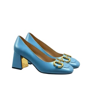 Gucci Women’S Mid Heel Pump With Horsebit Blue