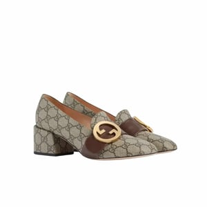 Gucci Women’S Horsebit Pump Gg Canvas Beige And Dark Brown