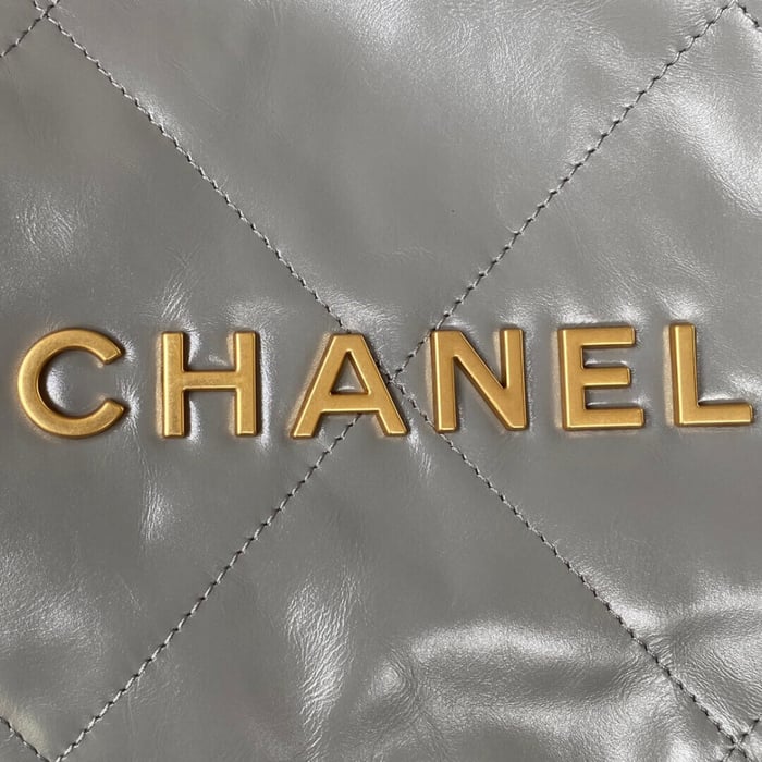 – Gray Metallic Calfskin leather strap with interwoven chain detail