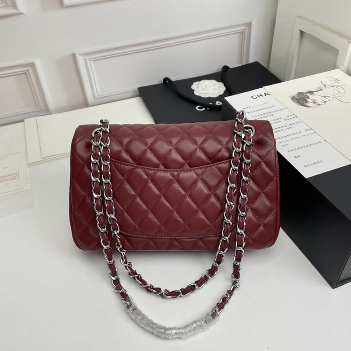 Chanel Classic Double Flap Bag Plum Red 25.5Cm/10in