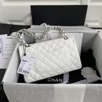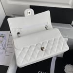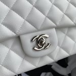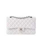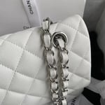 Chanel Classic Double Flap Bag White Silver Hardware 25Cm/10in