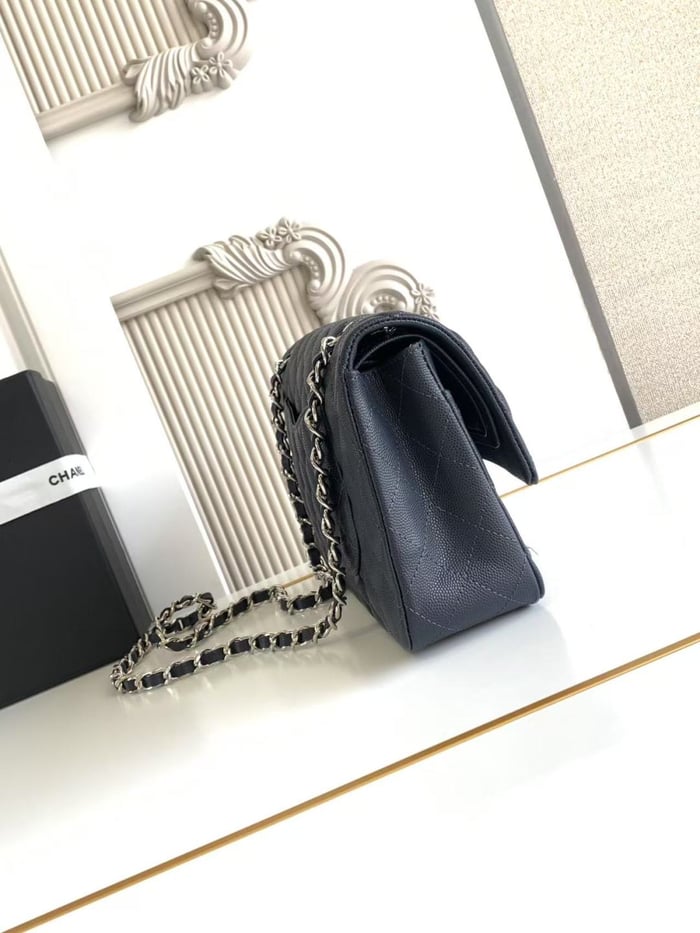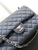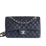 Chanel Classic Flap Bag 25 cm Navy Blue Silver-Tone Hardware A01112