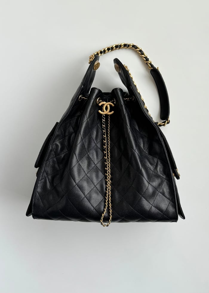 Chanel crossbody bag 25 Medium Handbag Grained Calfskin & Gold-Tone Metal Black 40cm/15.7in