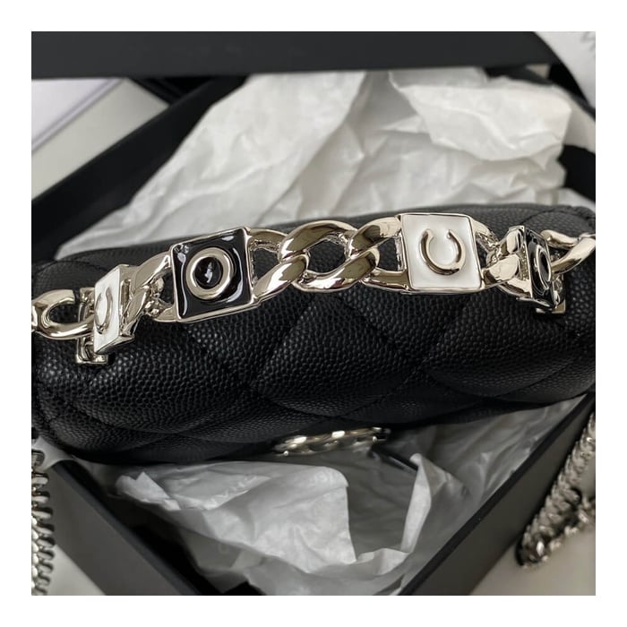 Chanel Enamel Handle Clutch with Chain in Grained Calfskin