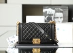 Chanel Medium Boy Quilted Gold Chain Black 25Cm