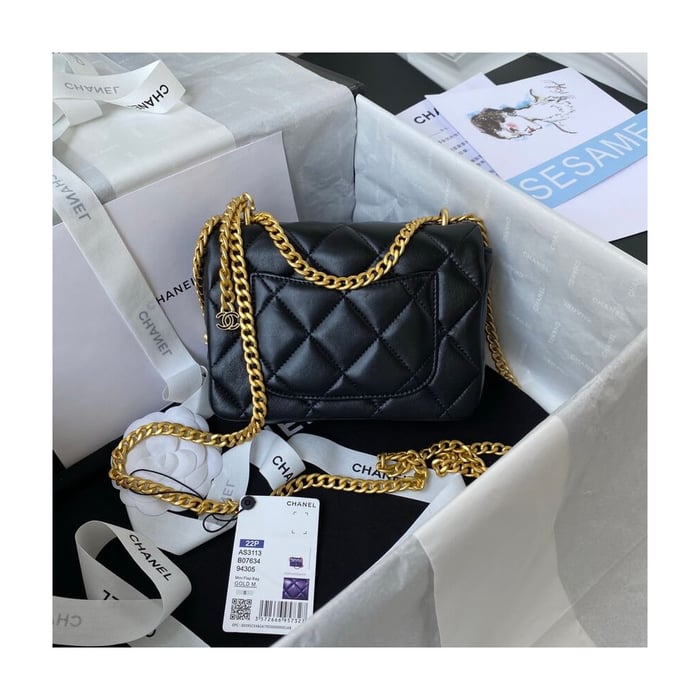 Chanel 22 Bag Handbag Black Shiny Calfskin 45cm