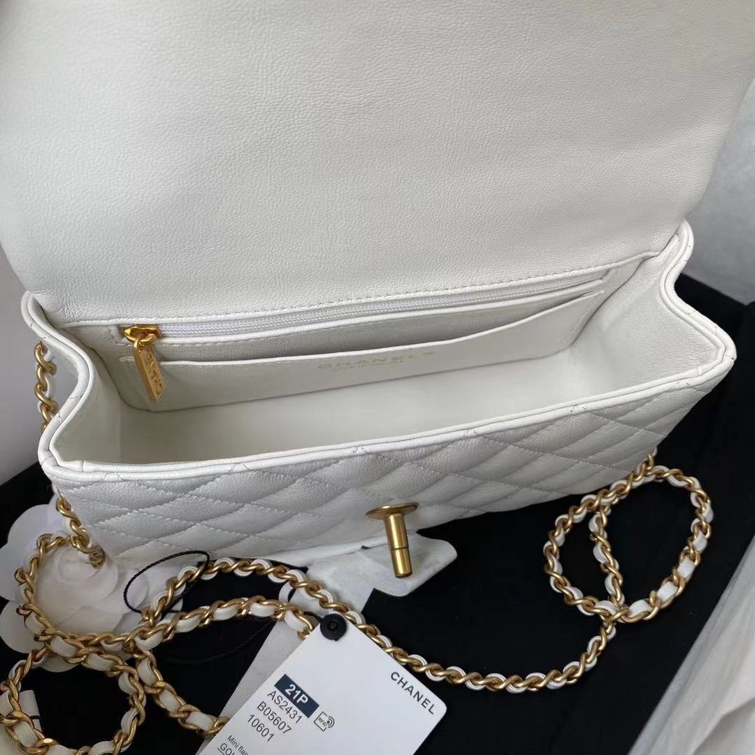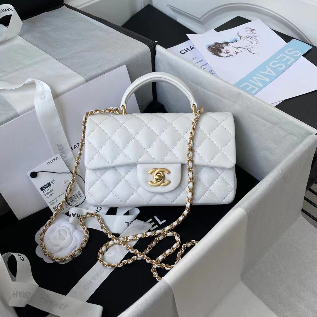 Chanel Mini Flap Bag With Top Handle White 20Cm As2431