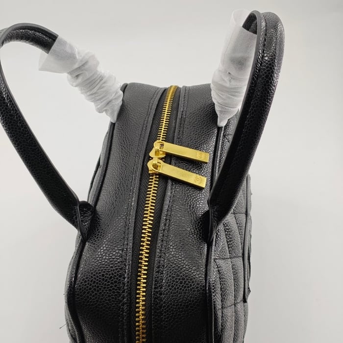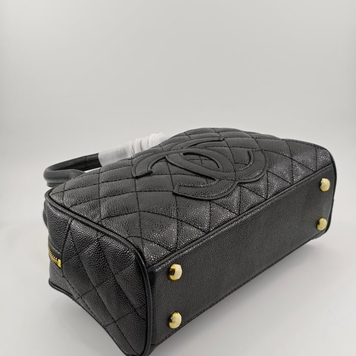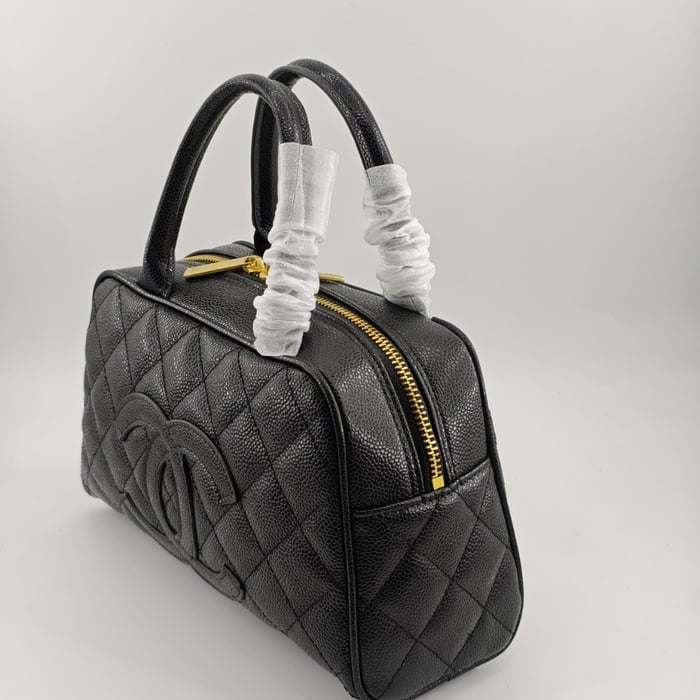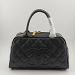 Chanel Quilted Caviar Small Bowler Satchel Black 25Cm/9.8in