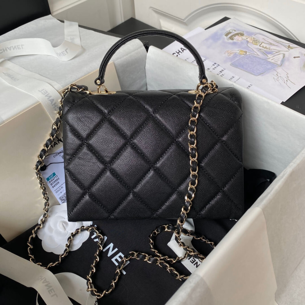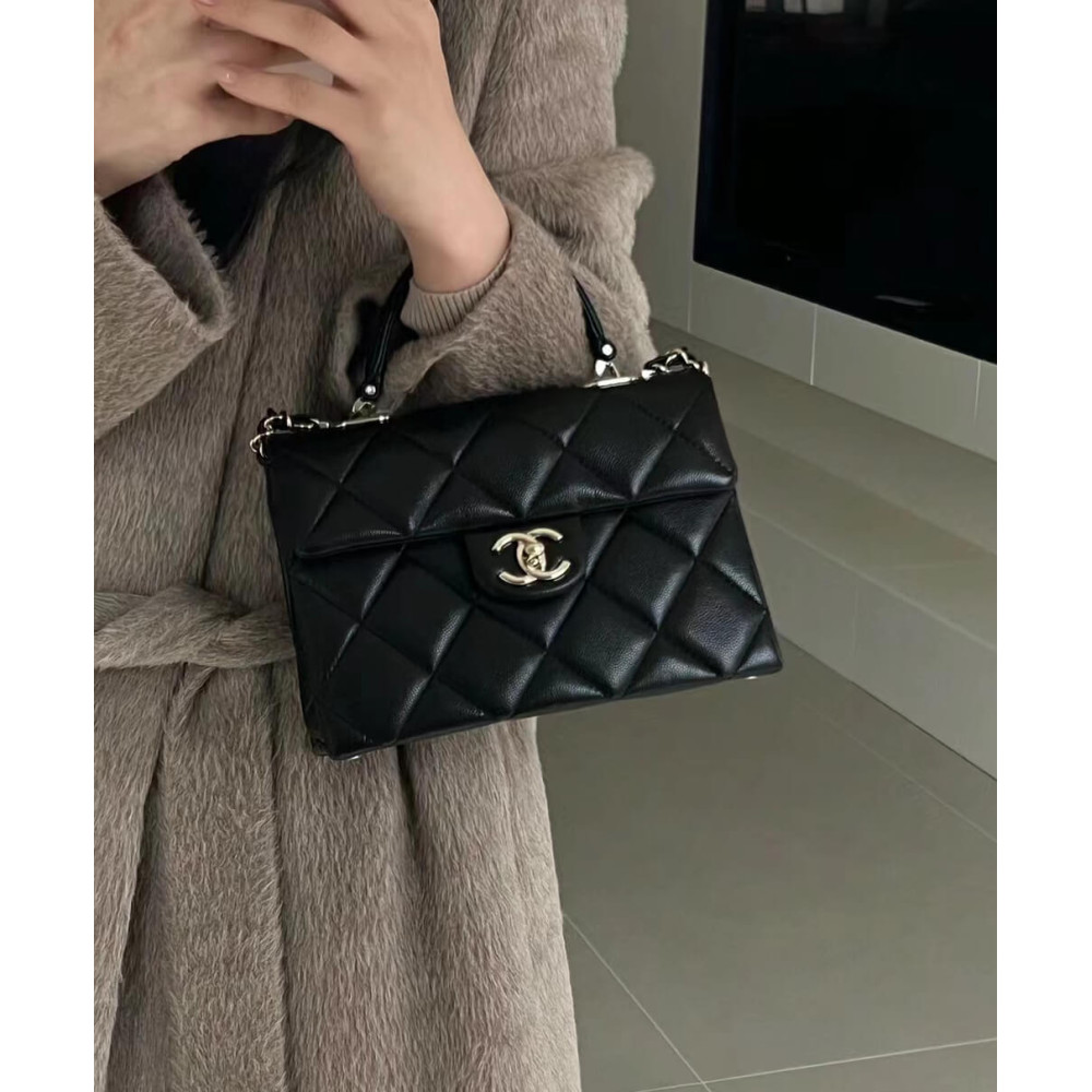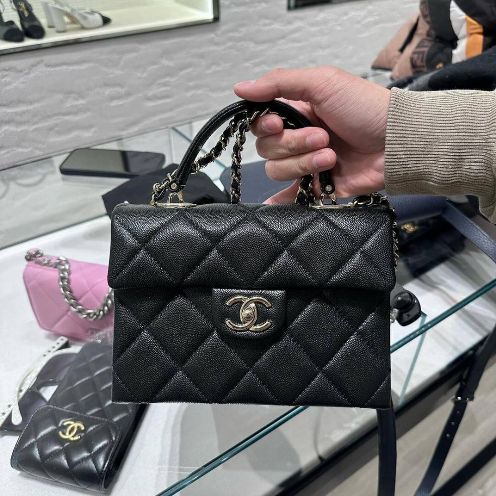 It feels like the Hermes Kelly Bag, but redesigned with Chanel iconic elements. My favorite mixes are there – the diamond quilting, the woven chain strap and the vintage-like CC logo on the center. The flap and the shape are both stunning. It’s like the Chanel Classic Flap Bag, but with something extra – and that is the handle on the top. Now you can carry this bag in multiple ways – on the shoulder, cross body and by hand thanks to the leather handle. All the pieces are just perfect. And I also adore the vintage gold CC logo. Because if you’re going to buy an extra Classic Bag for your wardrobe, you rather have one that is not similar to the Classic Flap Bag. The Classic Flap Bag has the smooth CC logo.