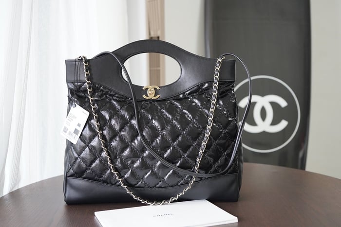 Chanel Vintage Quilted Chain Handle Bag Black 39Cm/15.3in