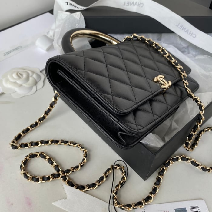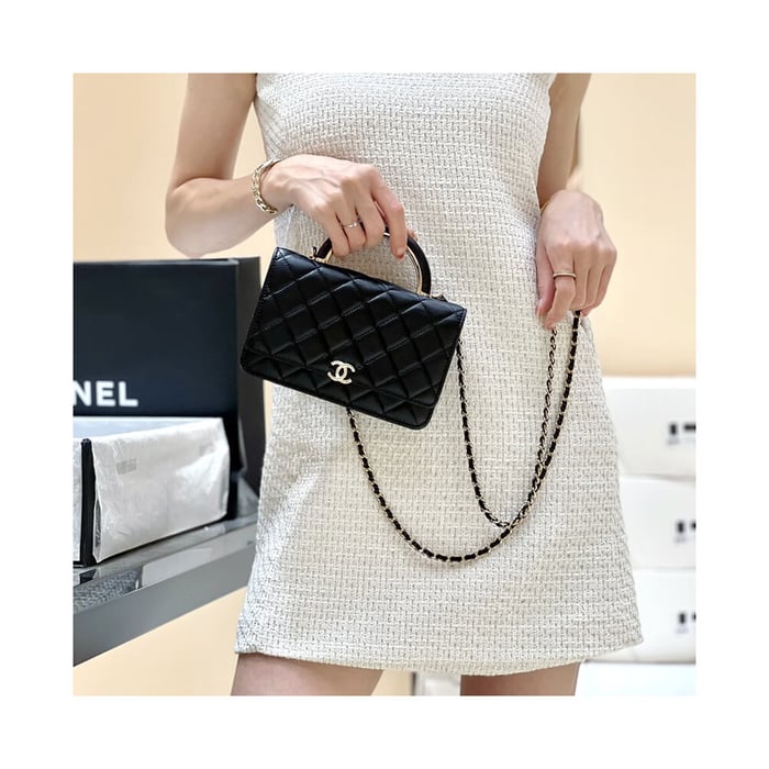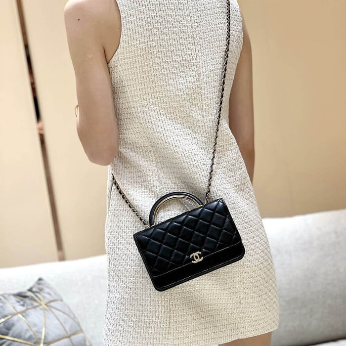 Wallet On Chain Bags are one of the most popular fashion items to buy, but handle bags are also in high demand. So what if you combine these two together? You get the Chanel Wallet On Chain Top handle. This bag could be a seasonable item, so it’s good to invest now before you regret later. The Chanel WOC Top Handle features diamond quilting and the classic golden CC logo. It included a front flap and is crafted with woven chain strap, just like it should be. It come with a nice handle for top, so you can tote it. The handle is partly refined with golden hardware.