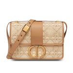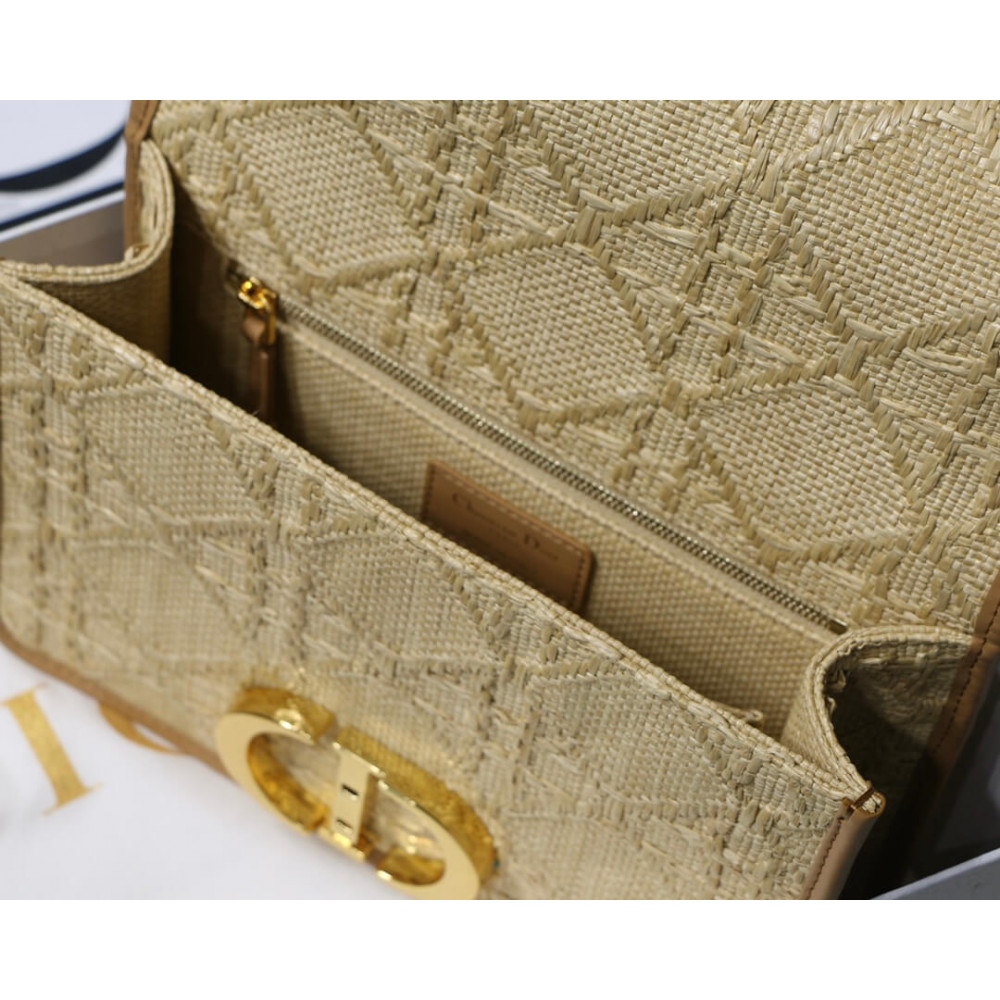 The 30 Montaigne line, inspired by the hallmark address, offers essential pieces that embody the House’s iconic codes. Crafted in natural raffia, the handbag displays the classic Cannage motif. The flap has an antique gold-finish metal ‘CD’ clasp, inspired by the seal of a Christian Dior perfume bottle. Other details, like the embossed ’30 MONTAIGNE’ signature at the back highlight the streamlined design. The 30 Montaigne bag has an adjustable leather shoulder strap and can be carried by hand, worn over the shoulder or crossbody.