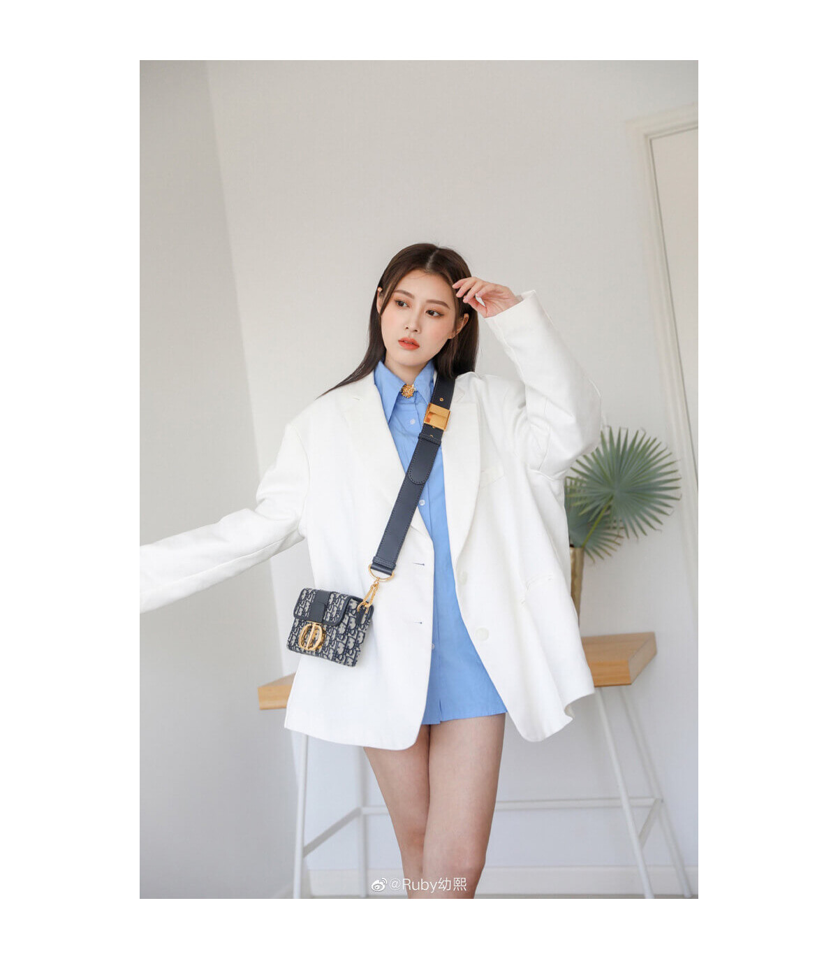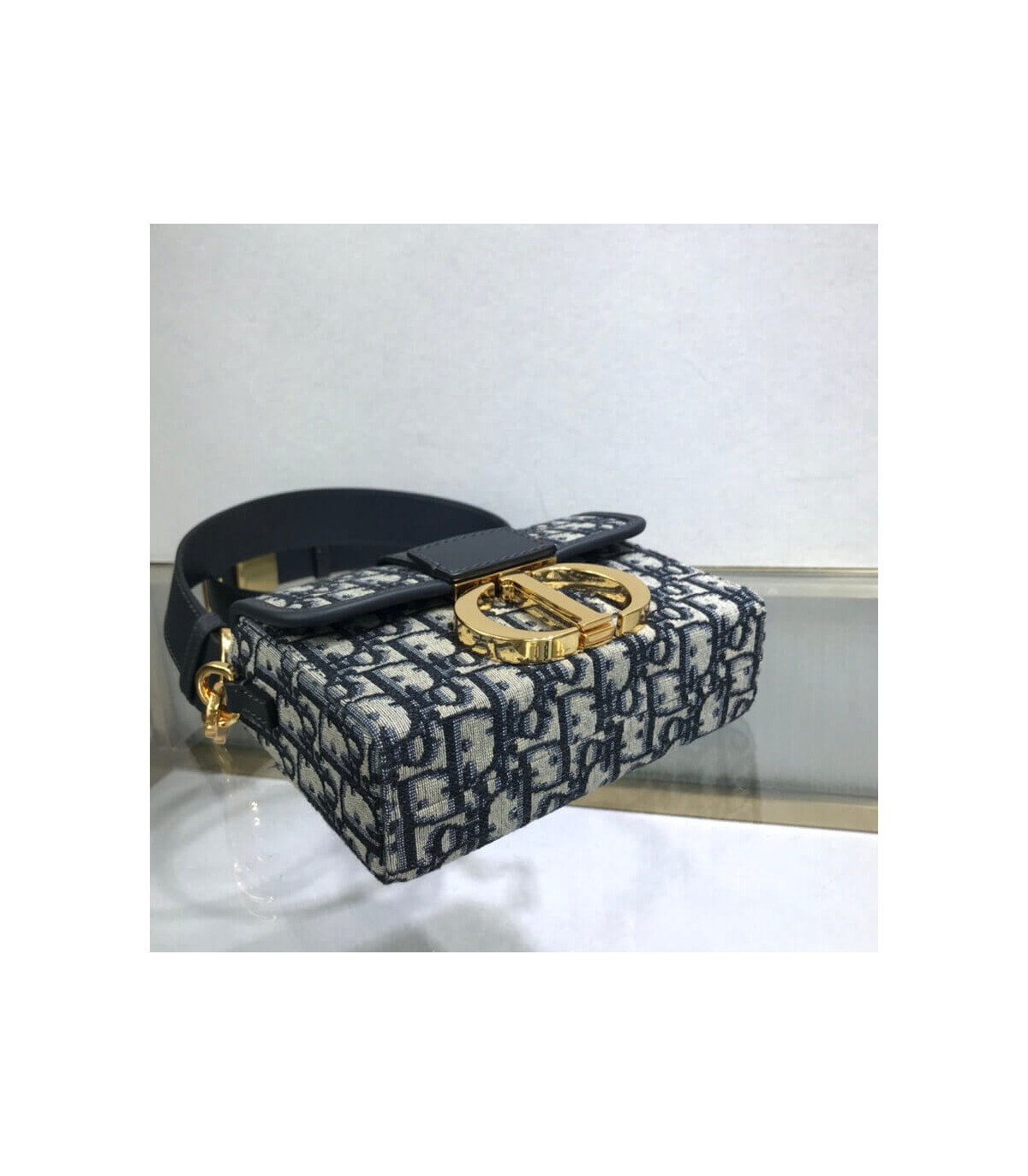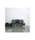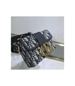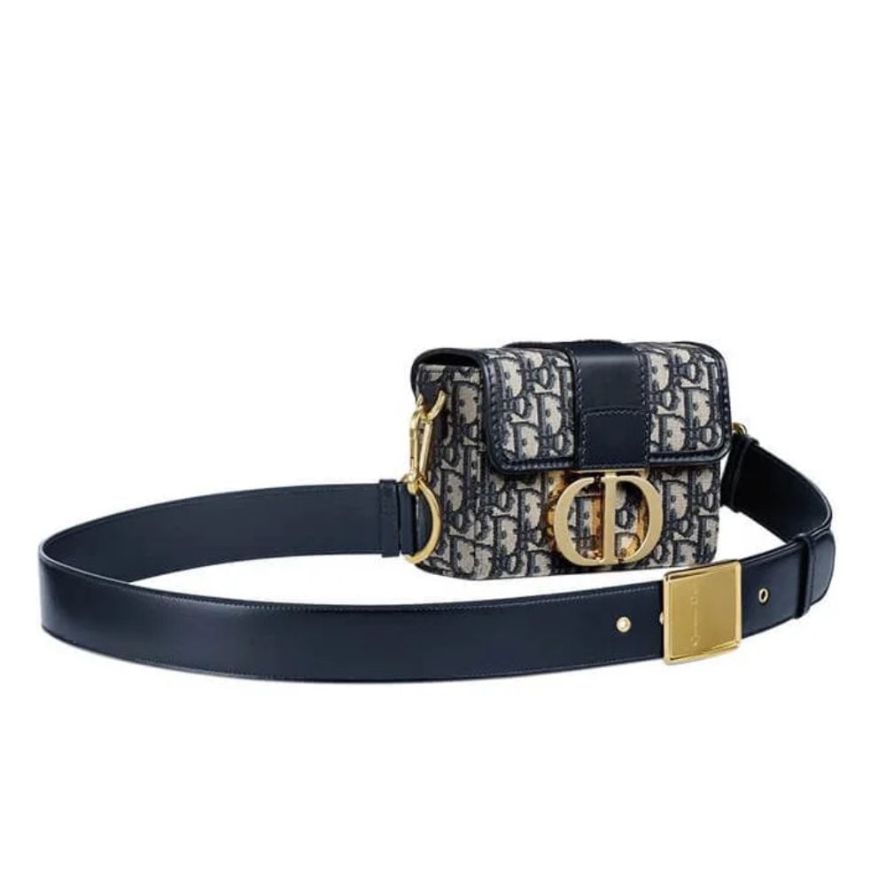 The 30 Montaigne line is inspired by the emblematic address and offers essential pieces that embody the House’s iconic codes. The compact handbag is crafted in blue Dior Oblique jacquard for an elegant and modern look. The flap is embellished with an antique gold-finish metal ‘CD’ clasp, inspired by the seal of a Christian Dior perfume bottle. Refined details, such as an embossed ’30 MONTAIGNE’ signature on the back and the military-inspired buckle define this unique design. Featuring an adjustable leather shoulder strap, the bag may be carried by hand, worn over the shoulder or crossbody.